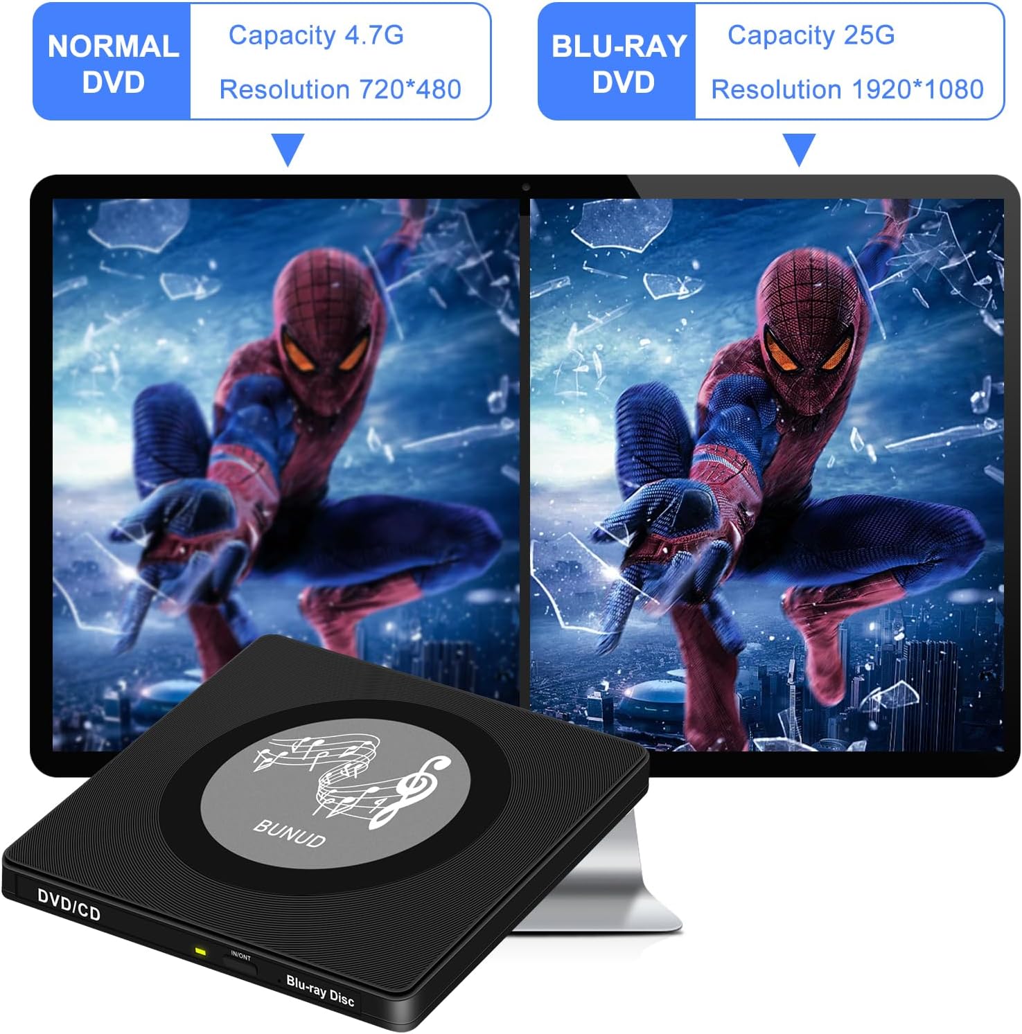 【Wide Compatibility】The blu-ray drive external is ideal for various devices, it compatible with Laptop Windows 11/10 PC Mac OS MacBook Pro/Air, iMac and desktop. Please note that Blu-ray player can not work for iPad/ Tablet / Projector / TV/ Chrome OS/ Car/ Smart Phone. (Note: The Bluray DVD Drive does not play 4K Ultra HD Discs).