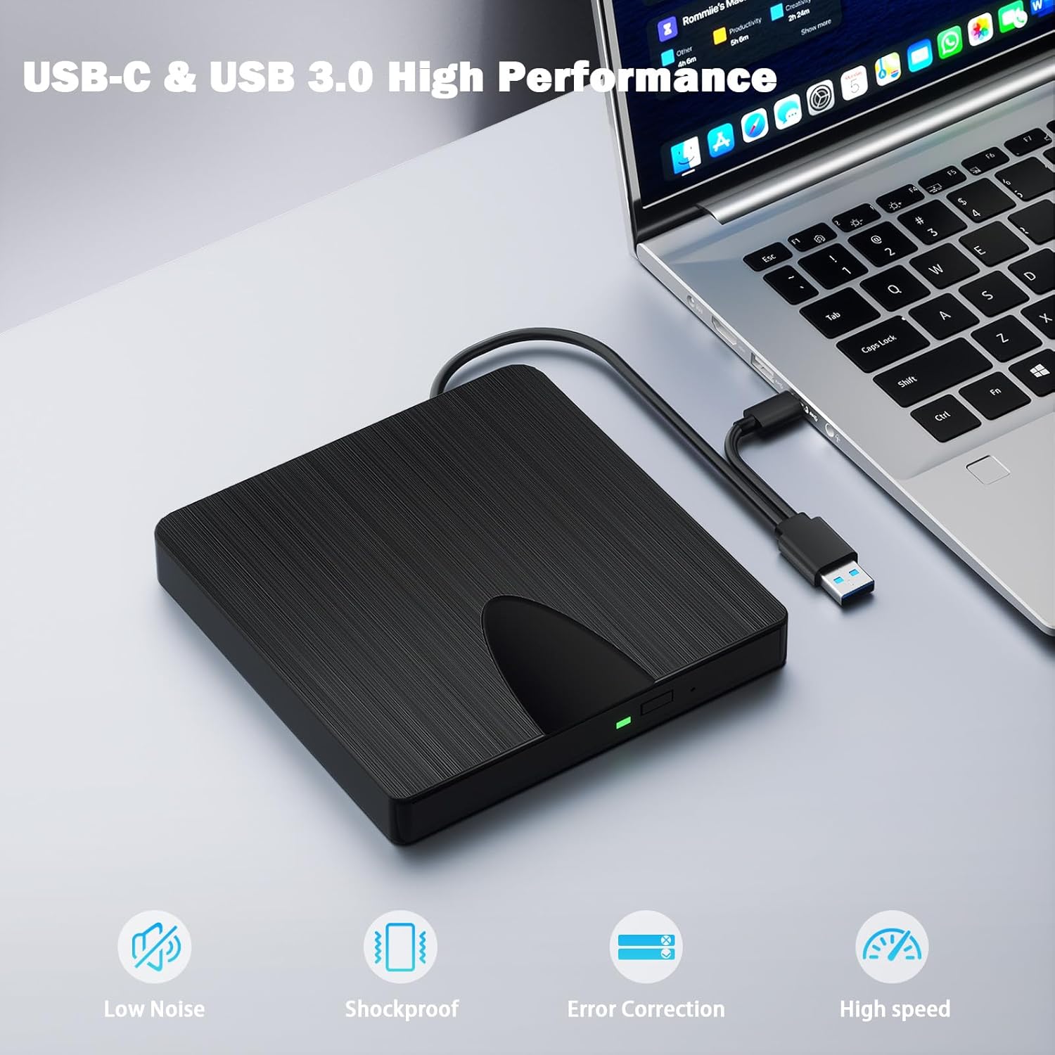 High Performance: The blu ray drive has impressive high-performance capabilities. Its cutting-edge high-speed 3.0 interface and Type-C interface exhibit exceptional error correction capabilities, impact resistance, minimal sound, and low power consumption.Blu ray burner external can read CDs at speeds of up to 24x, DVDs at up to 8x, and BDs at up to 6x. Additionally, it supports burning normal CDs and DVDs in sizes of 8.5GB, 4.7GB, and 700MB, as well as 3D discs.