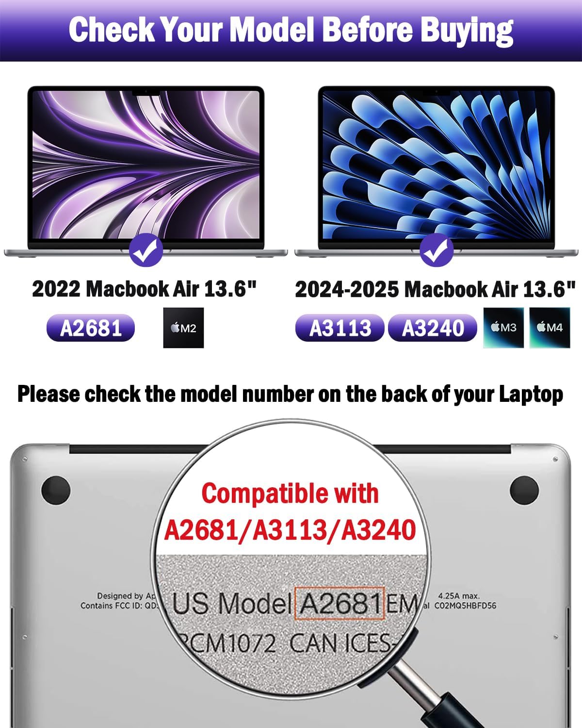 【Compatible Model】 This anti glare laptop screen protector is specially compatible with MacBook Air 13.6 Inch Year 2025, 2024, 2023, 2022, M4, M3, M2 (Model: A3240, A3113, A2681)
