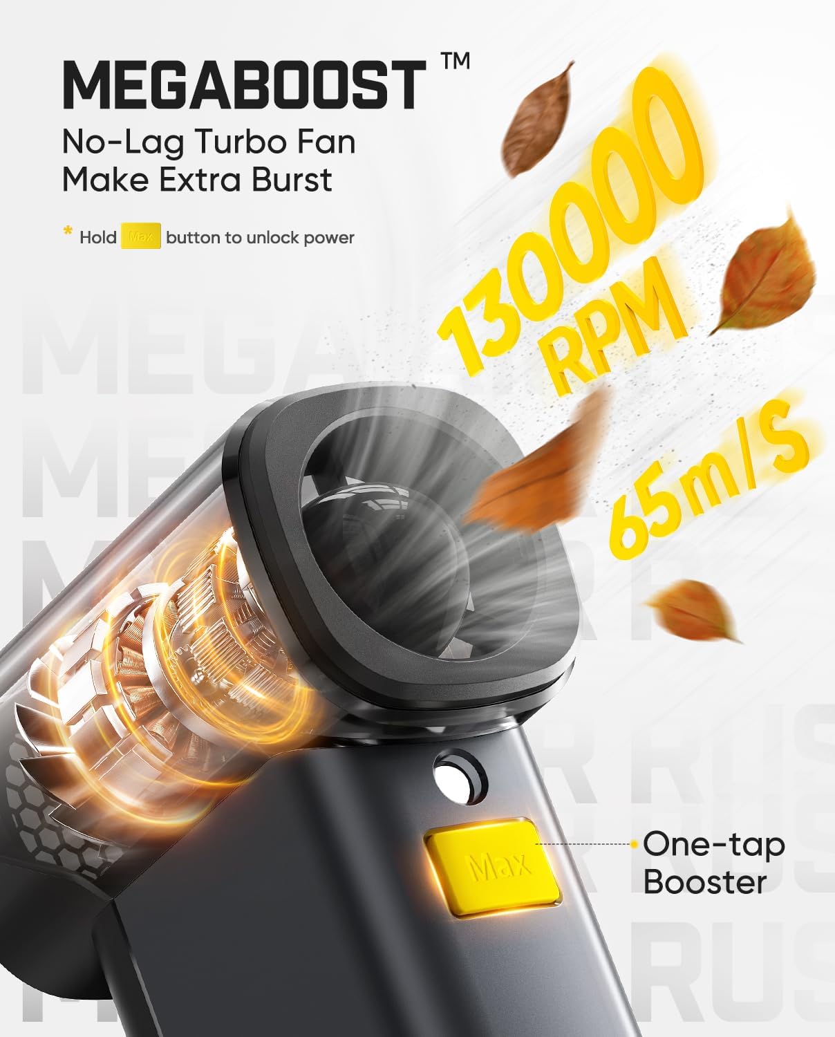 Powerful Performance: Whether it’s dust in electronic devices, particles on a workbench, or grit in modular keyboards, Fanttik air duster’s 130000 RPM brushless motor does it all. With 6 levels, this cordless air duster goes from light dust removal to high-speed cleaning at 65 m/s. Need instant power? Activate One-Tap Booster for a burst of airflow