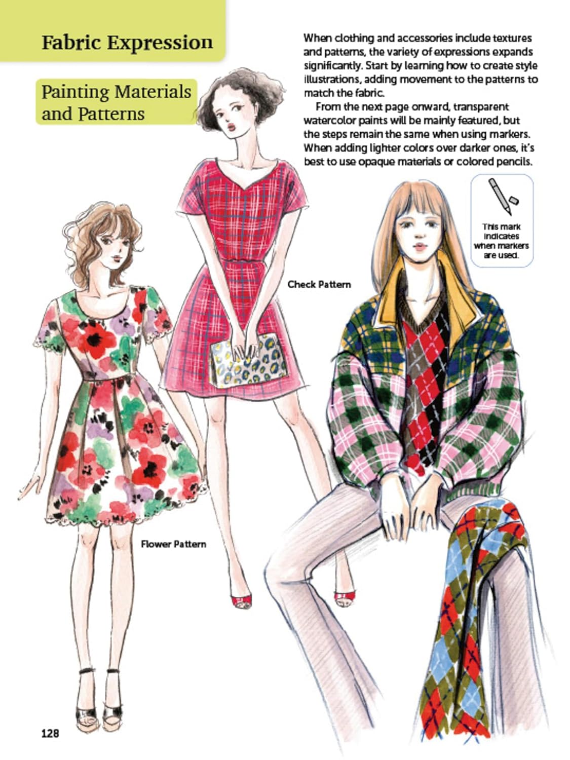 Author Hiroko Fukuchi, one of Japan’s leading fashion illustration teachers, shares insider tips and techniques to help you master the art of fashion drawing—from sketching realistic human figures to illustrating stylish outfits and textured fabrics