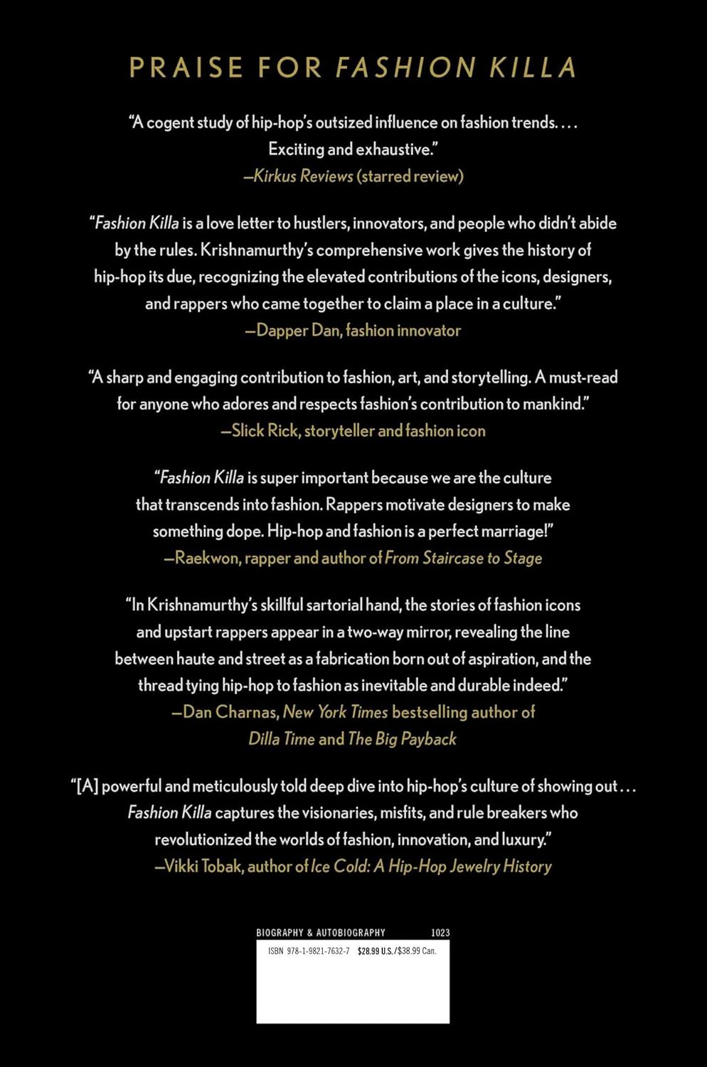 Journalist Sowmya Krishnamurthy explores the connections between the DIY hip-hop scene and the exclusive upper-echelons of high fashion. She discusses the sociopolitical forces that defined fashion and tracks the influence of music and streetwear on the most exclusive (and exclusionary) luxury brands. “An essential book about US culture” (Booklist, starred review), Fashion Killa commemorates the contributions of hip-hop to music, fashion, and our society at large.