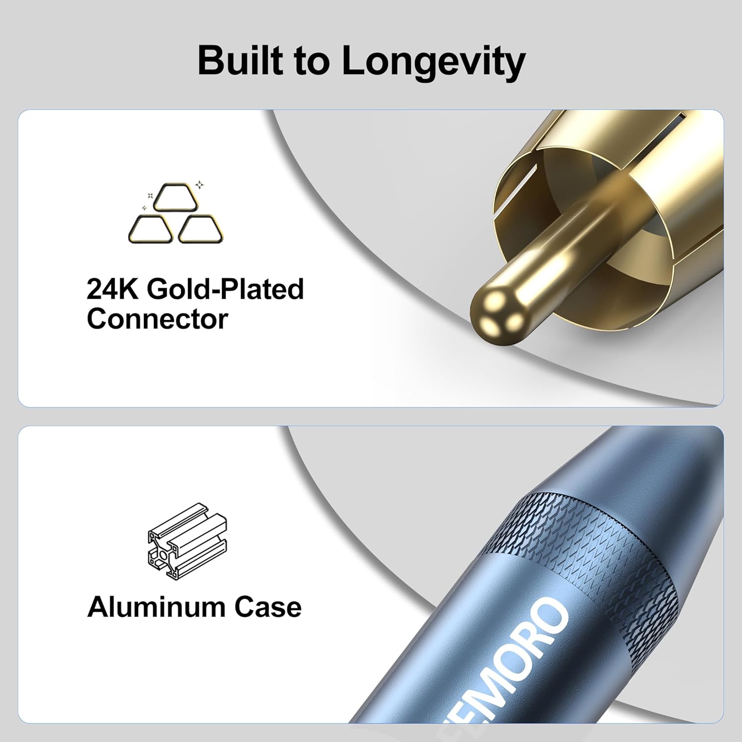 【Incredibly Deep Bass】FEMORO subwoofer cable allowing for full range of deep bass, panoramic sound surround, bringing you clean and crisp sound qualities and an immersive audio experience.