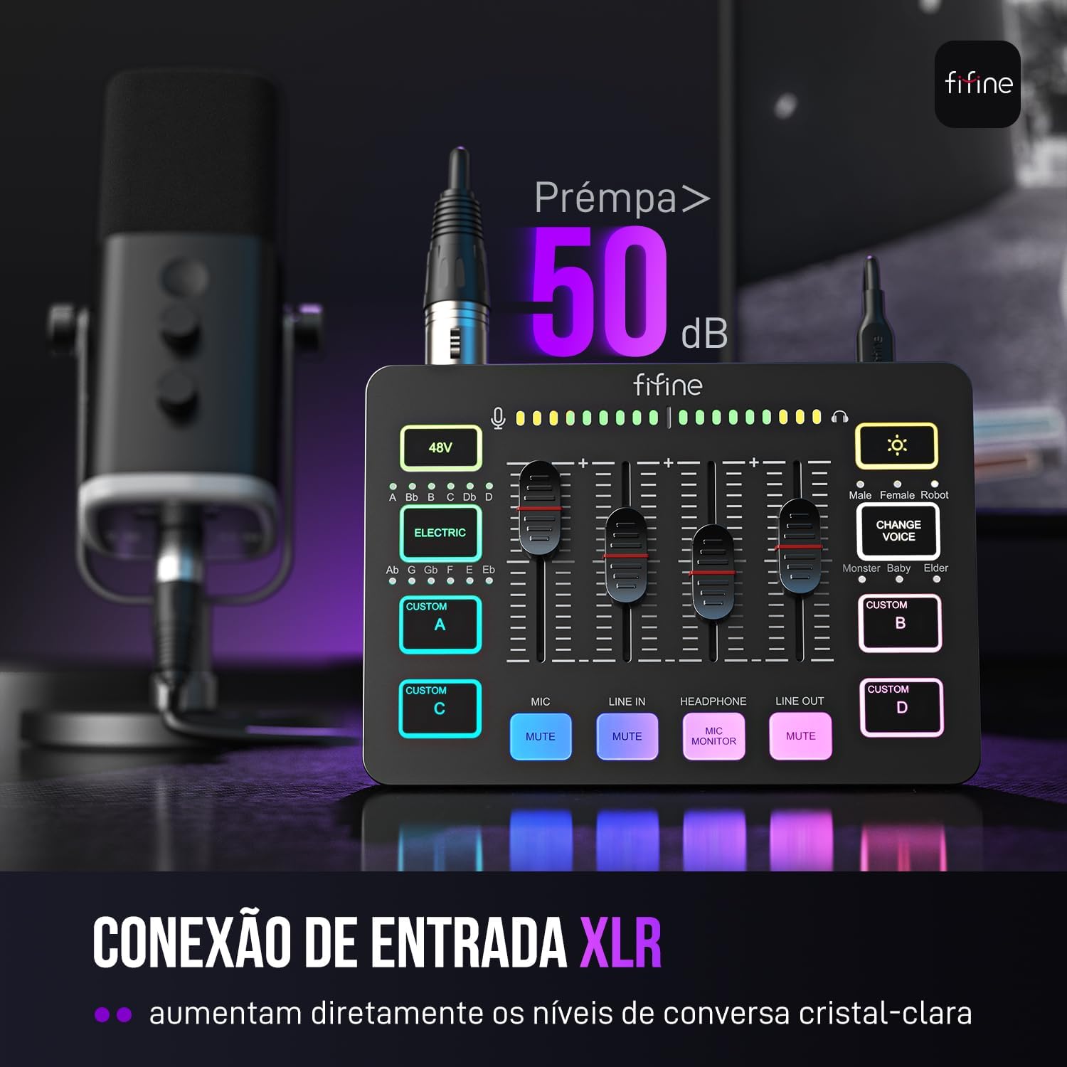 FIFINE Gaming Audio Mixer, Streaming RGB PC Mixer with XLR Microphone Interface, Individual Control, Volume Fader, Mute Button, 48V Phantom Power, for Podcast/Recording/Vocal/Game Voice-AmpliGame SC3