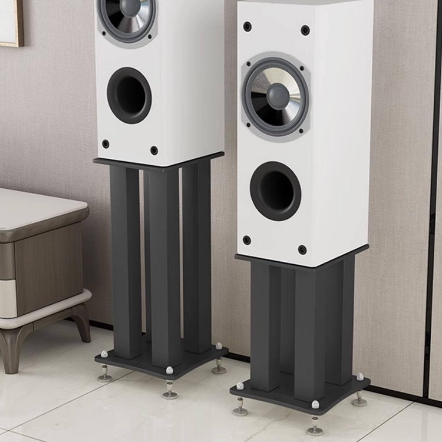 ▶【Safe and Stable】: The feet of this Universal Speaker Audio Stands use metal nails to penetrate the tray, which is stable and sturdy. The edges are designed with safe rounded corners and polished to prevent bumps