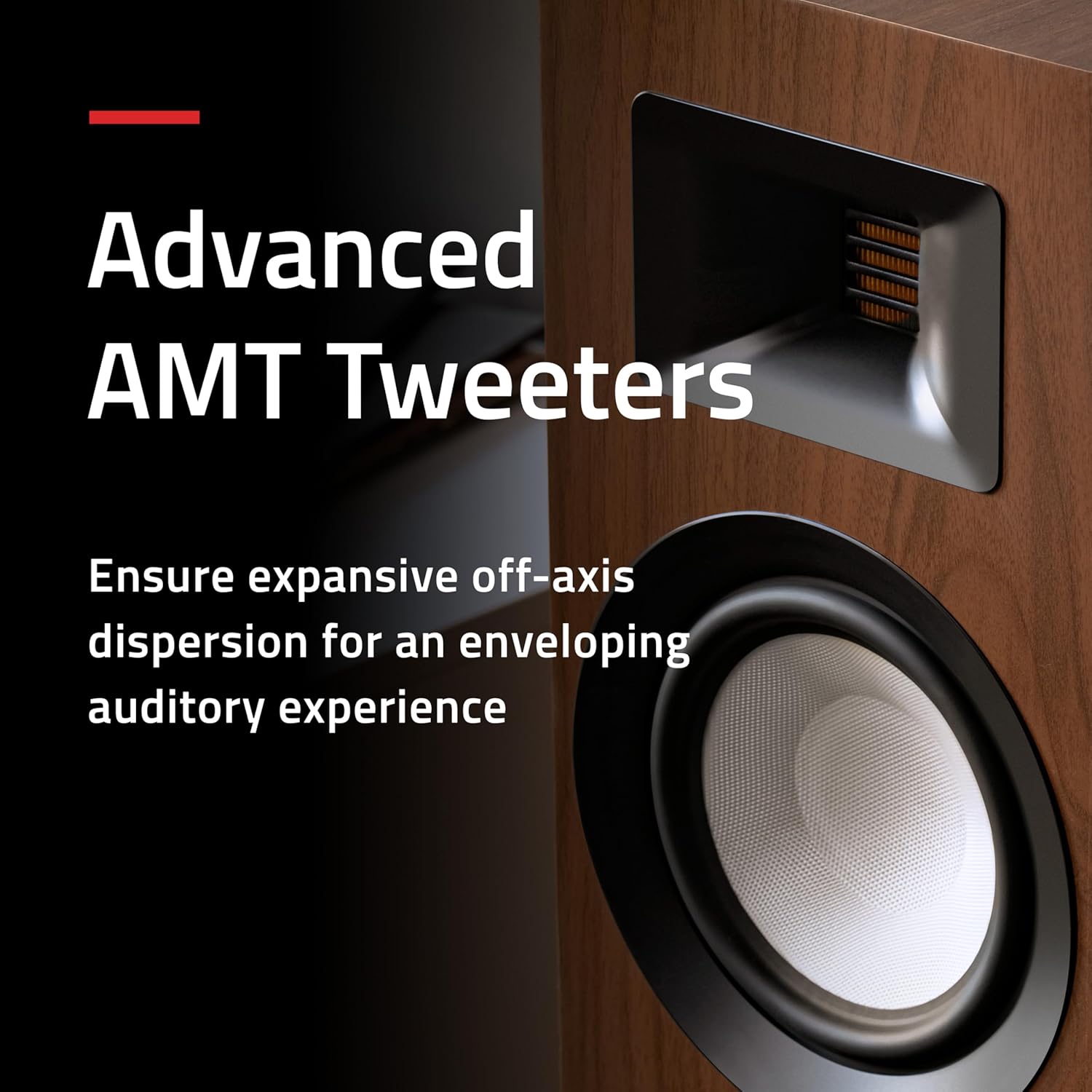 ADVANCED AMT TWEETERS: Provide an incredible high-frequency range and clarity down to the mids & vocals. When paired with our unique waveguide for wider off-axis dispersion, these speakers deliver a captivating listening experience