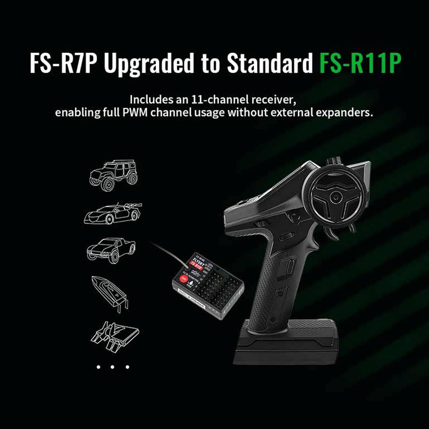 Ready-to-Run w/ FS-R11P Receiver: Start controlling immediately! Includes the 11-channel FS-R11P receiver. Access all PWM channels directly – no extra expanders needed. Perfect for demanding models right out of the box
