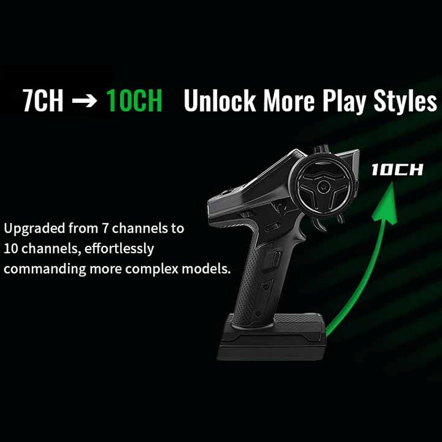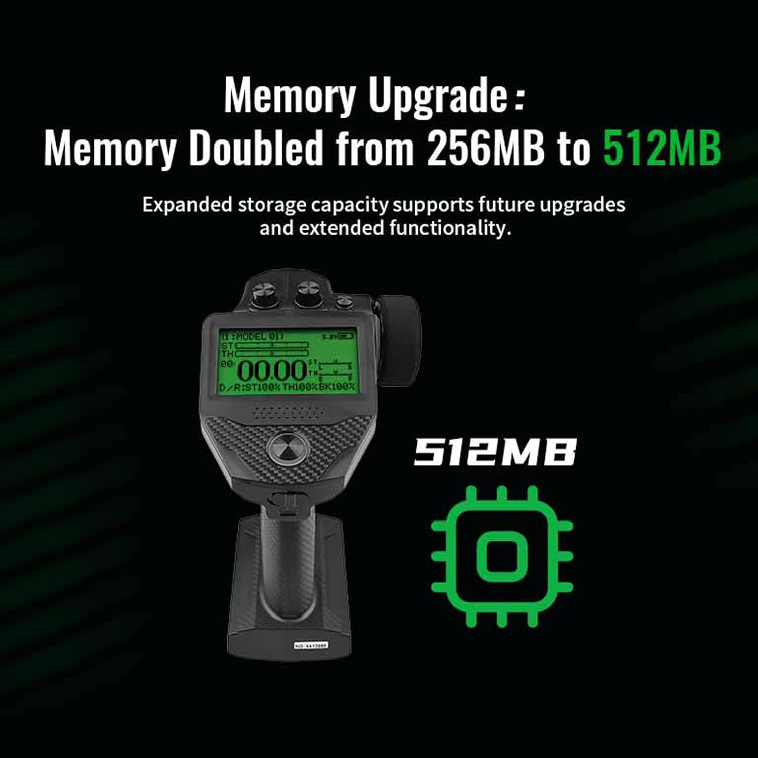 10-Channel Power & Doubled Memory: Unlock complex models! Flysky FS-G7P+ Transmitter upgraded from 7 to 10 channels for greater control. Doubled memory (256MB to 512MB) stores more setups and handles advanced functions effortlessly