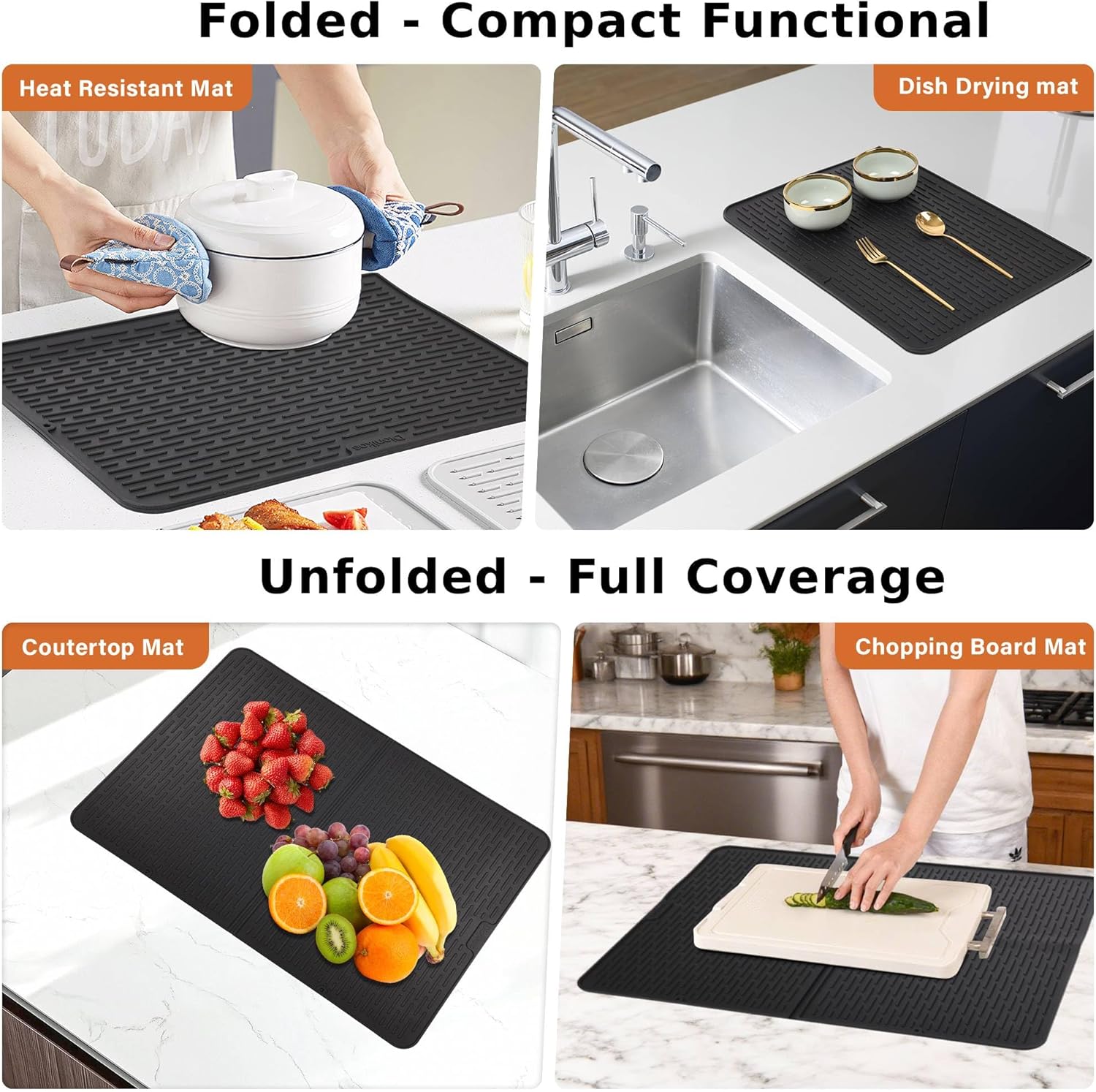 Multi-Functional Kitchen Mat – Use it as a trivet for hot pots and pans (heat resistant up to 450°F) or as a dish drying mat beside your sink. This versatile silicone mat also works as a countertop protector and silicone stove mat for glass top stove