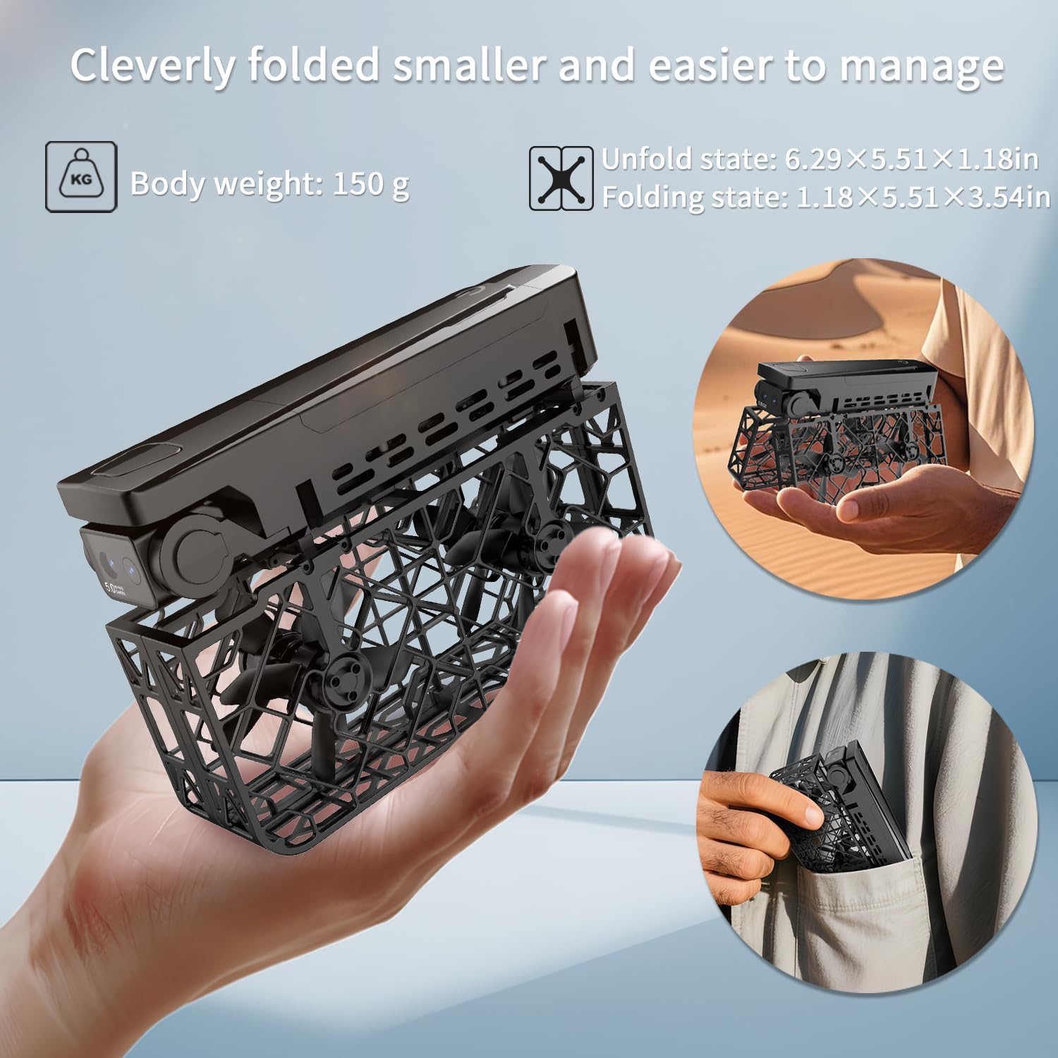 【360° Full Protection & Durable Design】 Features a high-strength lightweight full-wrap mesh guard that comprehensively covers the body and propellers, effectively resisting collisions and impacts. Combined with anti-drop design and 6-axis gyroscope stabilization technology, flight is smoother and more stable, making it easy for beginners to operate with confidence.