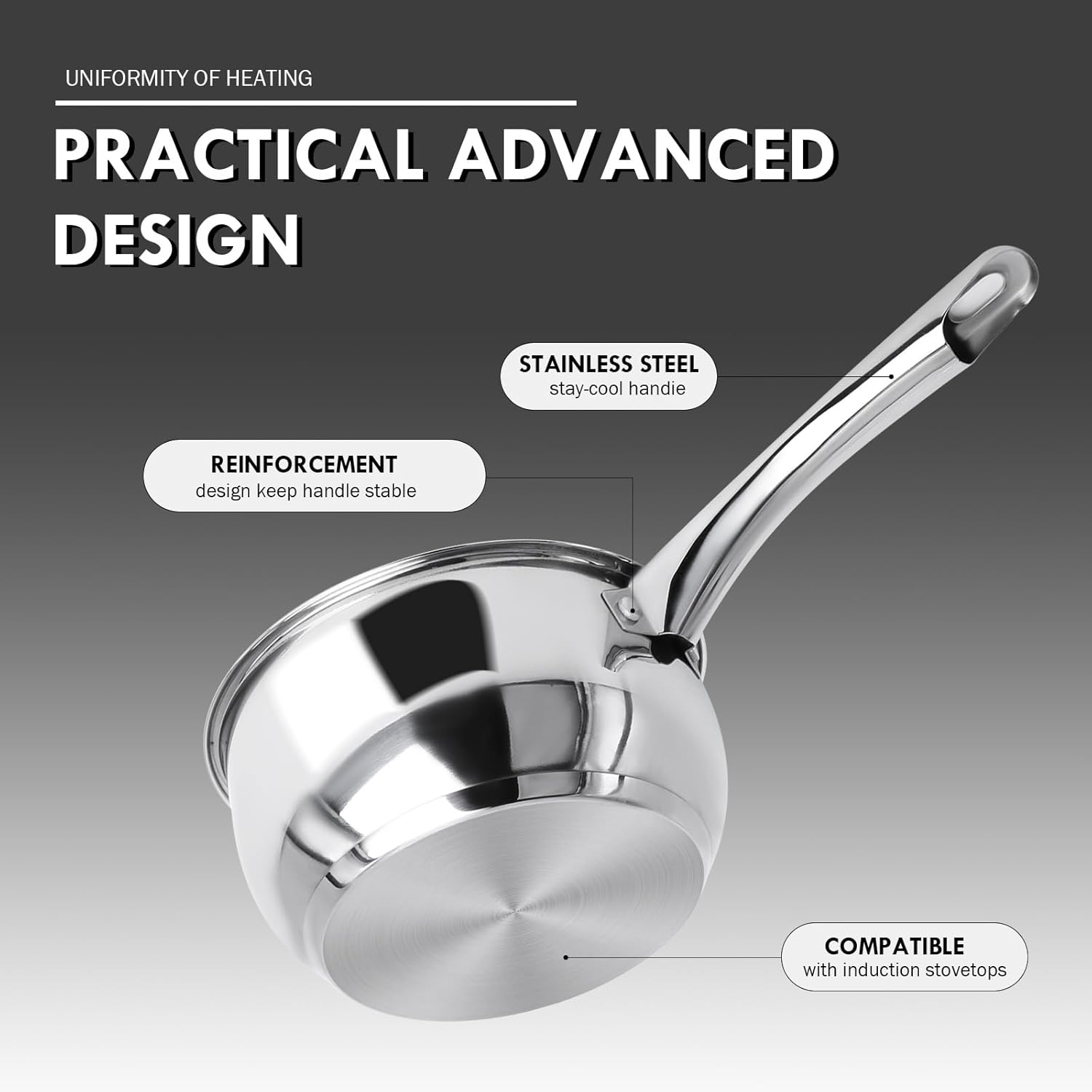Easy to Clean & Dishwasher Safe:The polished stainless steel surface makes cleaning effortless—just wipe it down or toss the dishwasher-safe cookware set into the dishwasher, saving you time and effort