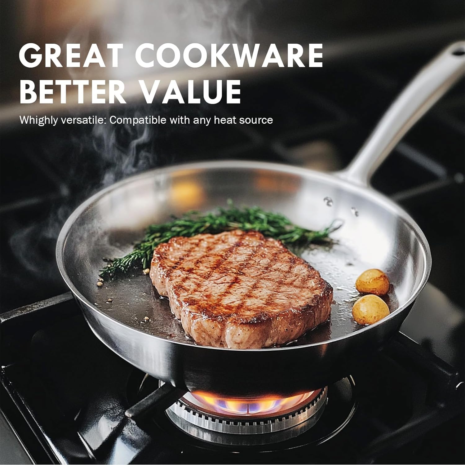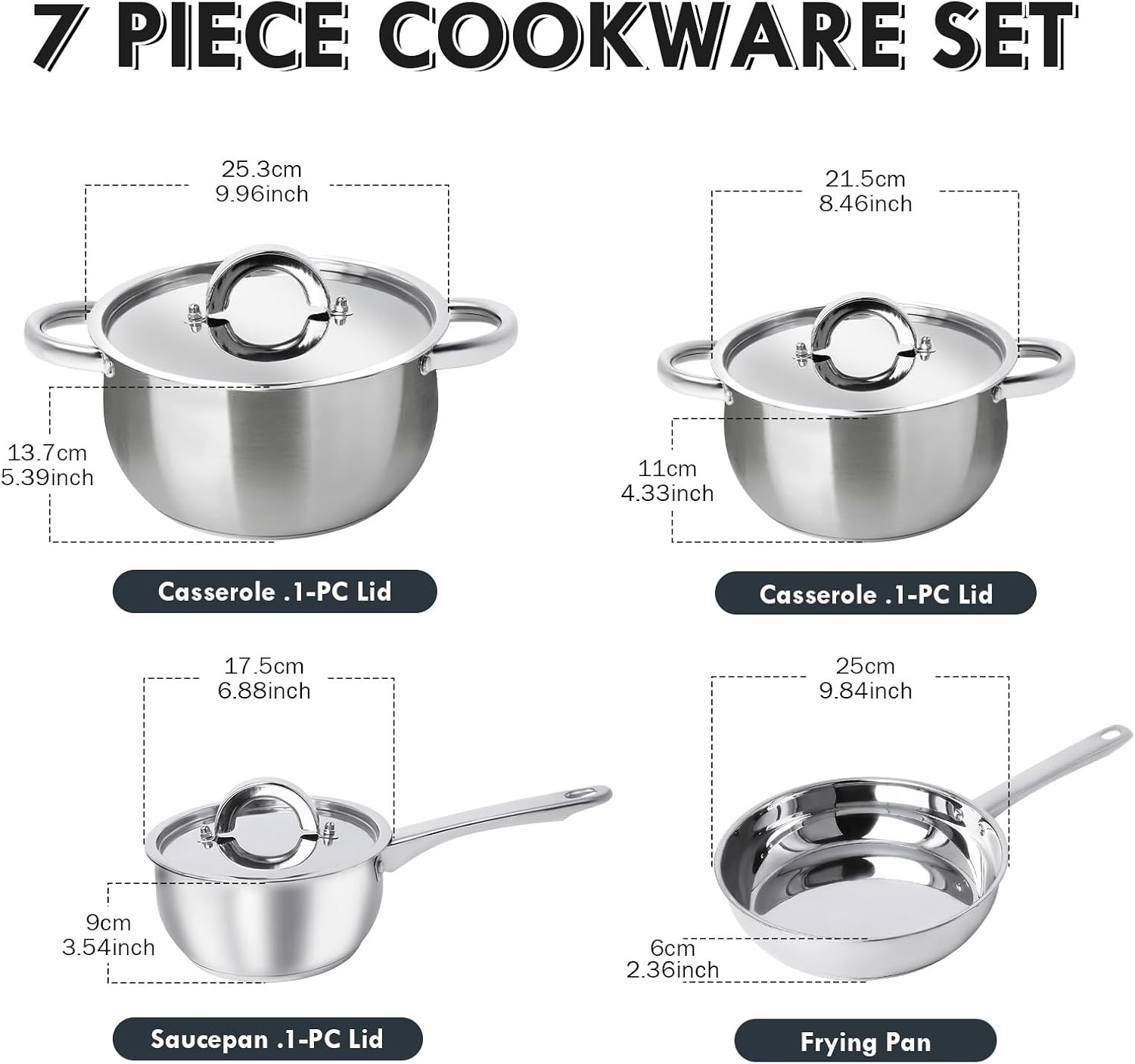 Premium Stainless Steel for Durability & Safety:Made of premium stainless steel, this 7-piece cookware set resists corrosion and high temperatures for long-lasting performance. The cook set fast, even heat distribution, reducing hot spots for efficient cooking