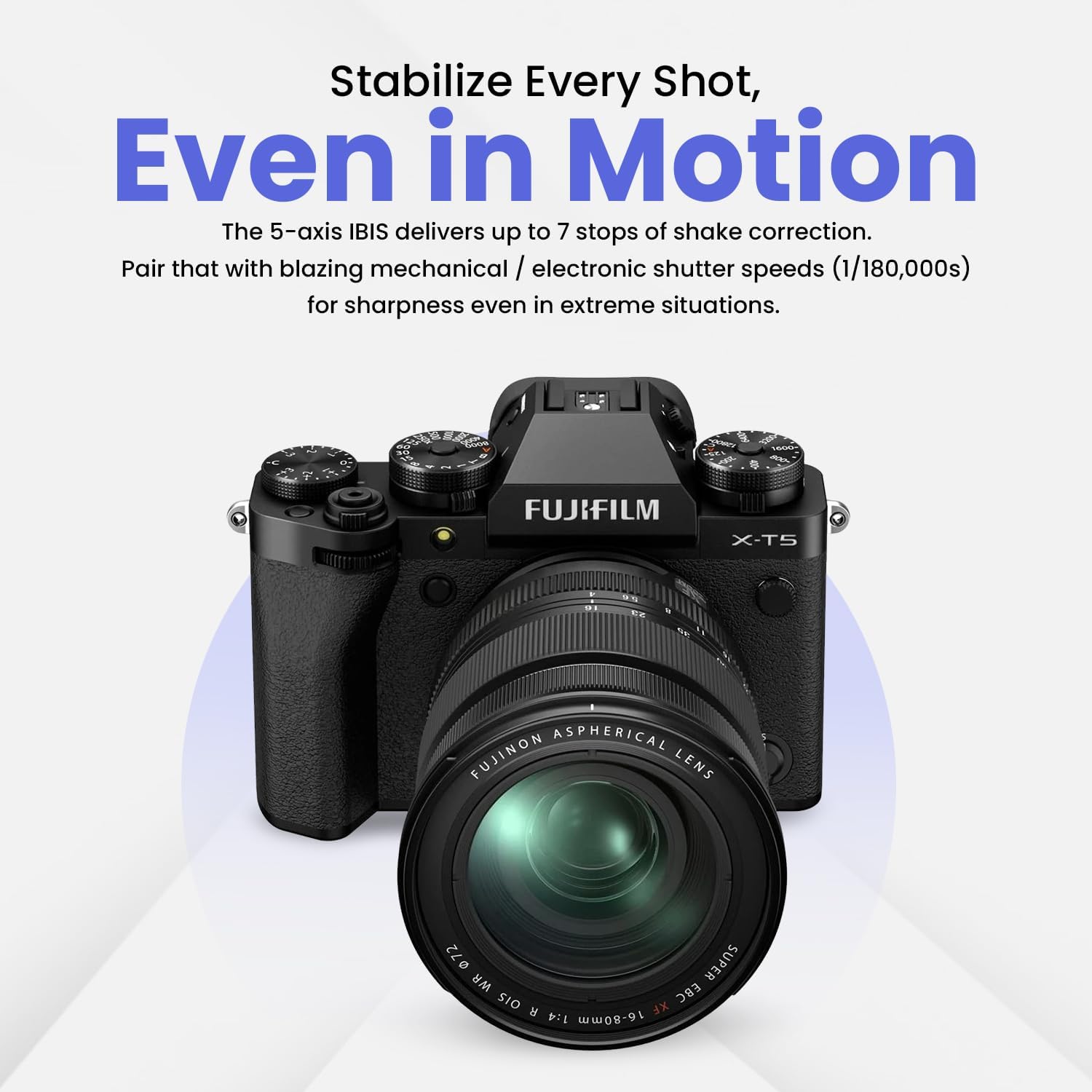 Versatile XF16-80mm f/4 R OIS WR Lens – Weather-sealed zoom (24–120mm equiv.) perfect for landscapes, portraits, and travel shooting.