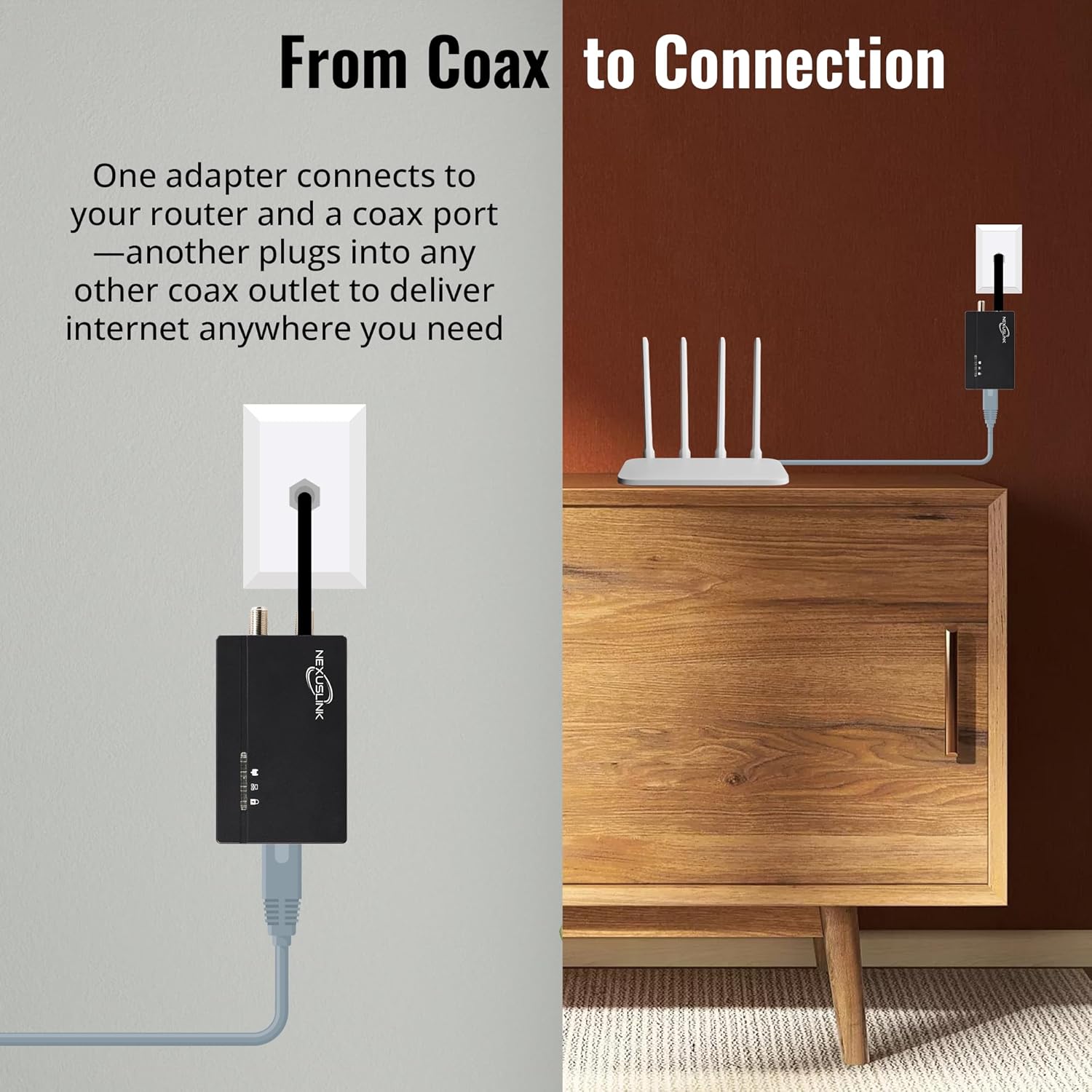 EASY INSTALLATION: The Nexuslink Ethernet adapter kit includes adapters for simple, quick setup. Use this Ethernet over coax kit to connect your devices through existing coaxial cables without the hassle of rewiring or installing new Ethernet cables.