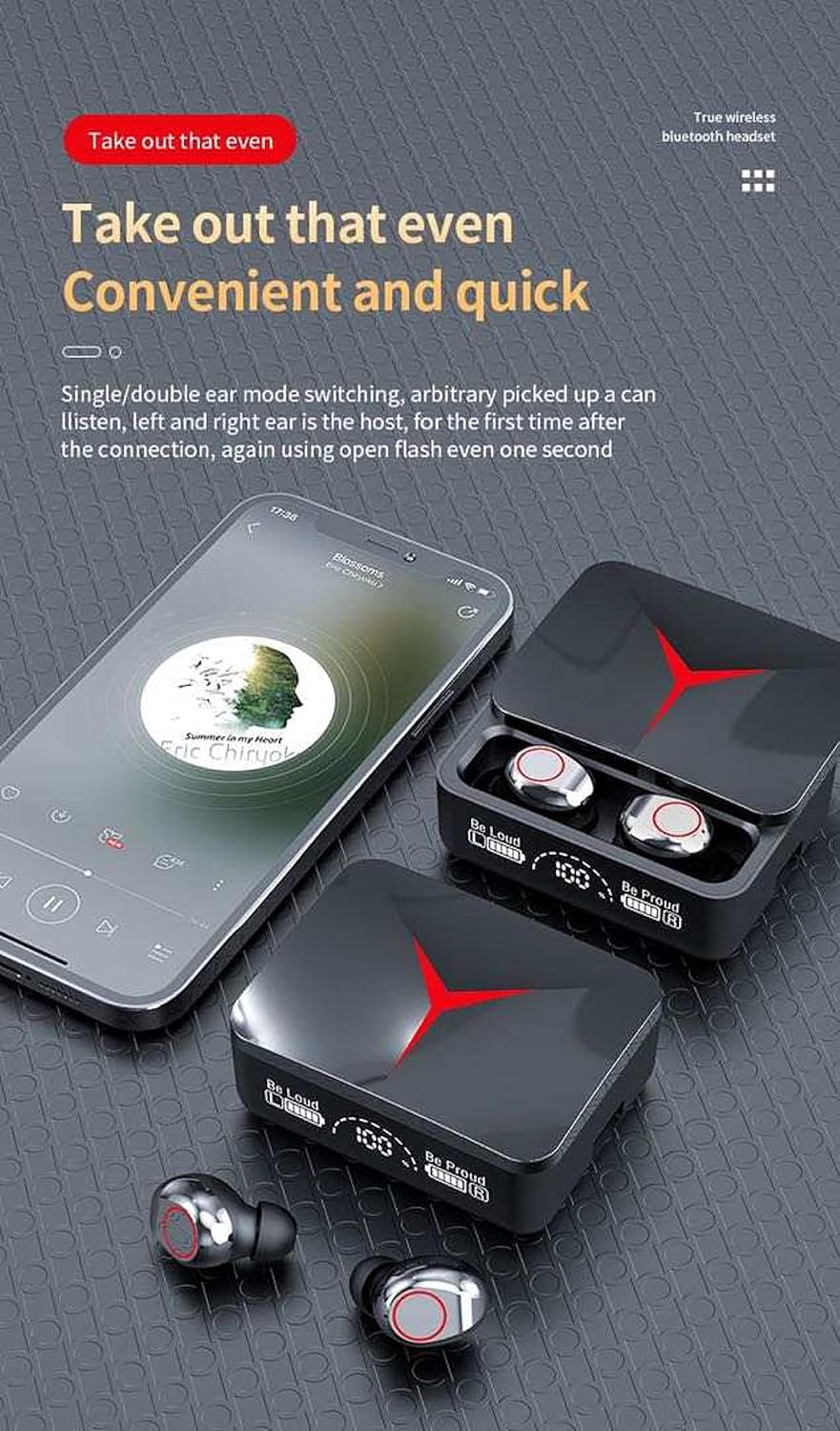 Advanced Bluetooth Technology & Superior LED Display. Adopting newest Bluetooth 5.2 and dual-channel transmission, this wireless earbuds support HSP HFP A2DP AVRCP, which offer you an unparalleled audio experience with faster transmission speed, stronger connection stability and longer range of bluetooth. The status of charging&remaining power of the case all shown in the screen. Once the bluetooth headphones in the case, it informs you of charging status and the current battery of the case to remind you charge in time. 【One Button Control & Multi Using Mode】With physical button on the buds, you can easily answer/reject/end phone calls or control music (pause/play, switch next/previous song, decrease/increase volume) or activate voice assistant. All operations at your fingertip, easy and simple even for beginners of Bluetooth headset. What’s more, the twin TWS earbuds can not only work together, but also work alone. You can also give one earphone to your partner, share a song or movie with him/her at the same time. Perfect for safe driving/working/dating etc. 【Wireless Charging and IPX5 Waterproof】The charging case of these bluetooth earbuds support wireless charging and USB C cable charging. These wireless headphones are rating at IPX5 waterproof, the nano-coating on earbuds surface can prevent water and sweat from penetrating, which can use as sport wireless headsets. 【Stereo sound quality】 Speaker presents a powerful and wide sound range, which makes the treble full of dynamics, and the bass powerful. Adopt advanced Bluetooth chip makes the sound played by the earphones much more beautiful and pleasant, suitable for sports or home work 【Engineered Design for Sports】 Equipped with soft, adjustable, secure-fit ear hooks for lightweight comfort and stability design, three different sizes of ear tips for choice and ergonomic design ensure your earbud stay comfortably firm in place when doing sports and outside activity, do not worry about the earphones will fall off.