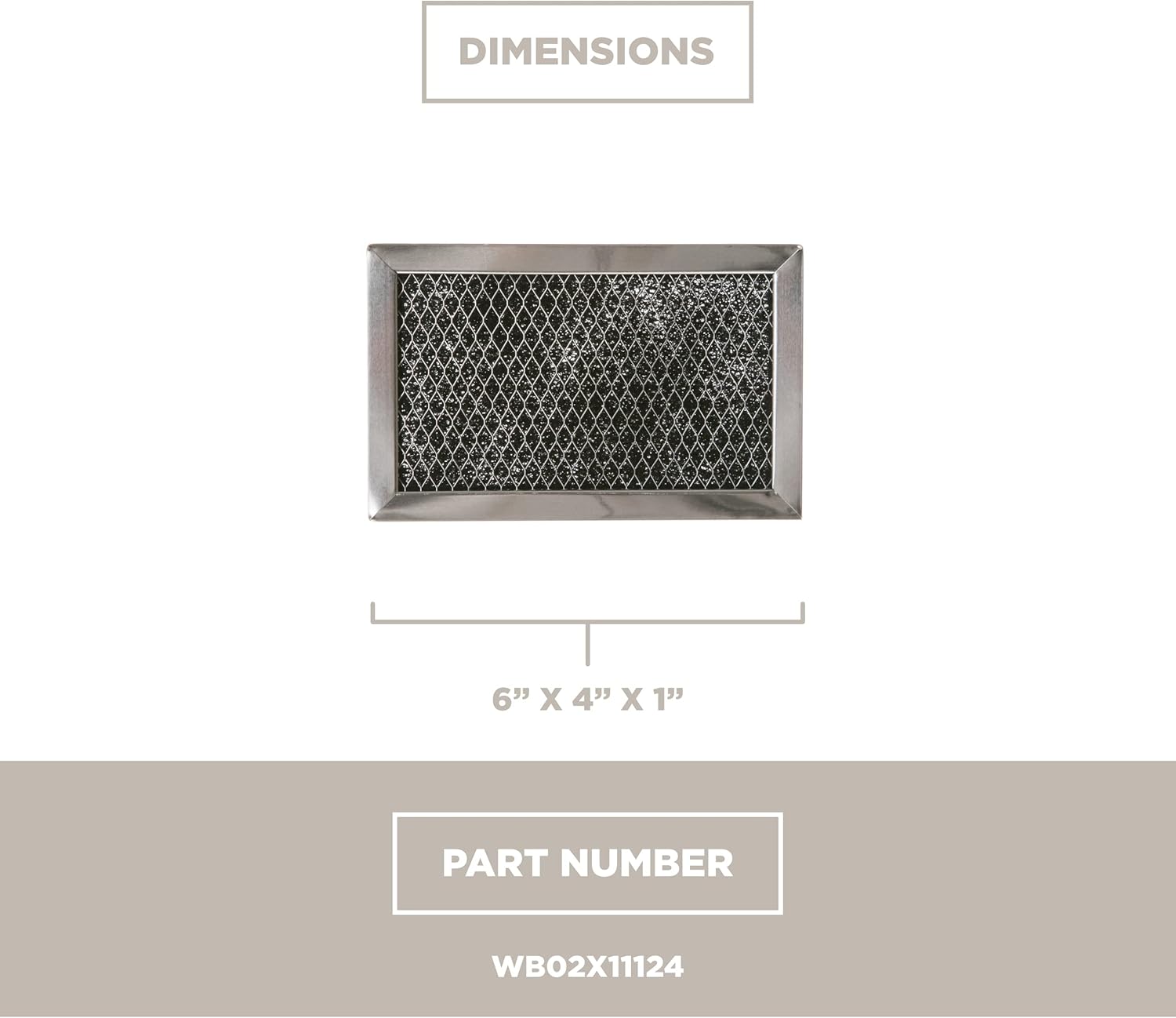 Microwave Charcoal Filter (part number WB02X11124) is a Genuine GE replacement part. For more than 100 years, GE Appliances has been a trusted brand, synonymous with quality and reliability. To continue earning your trust, our appliances and parts are engineered to precise specifications and subjected to rigorous testing. Behind every GE Appliances product is the work of thousands of dedicated Americans committed to excellence as well as a better future for our communities and our environment.