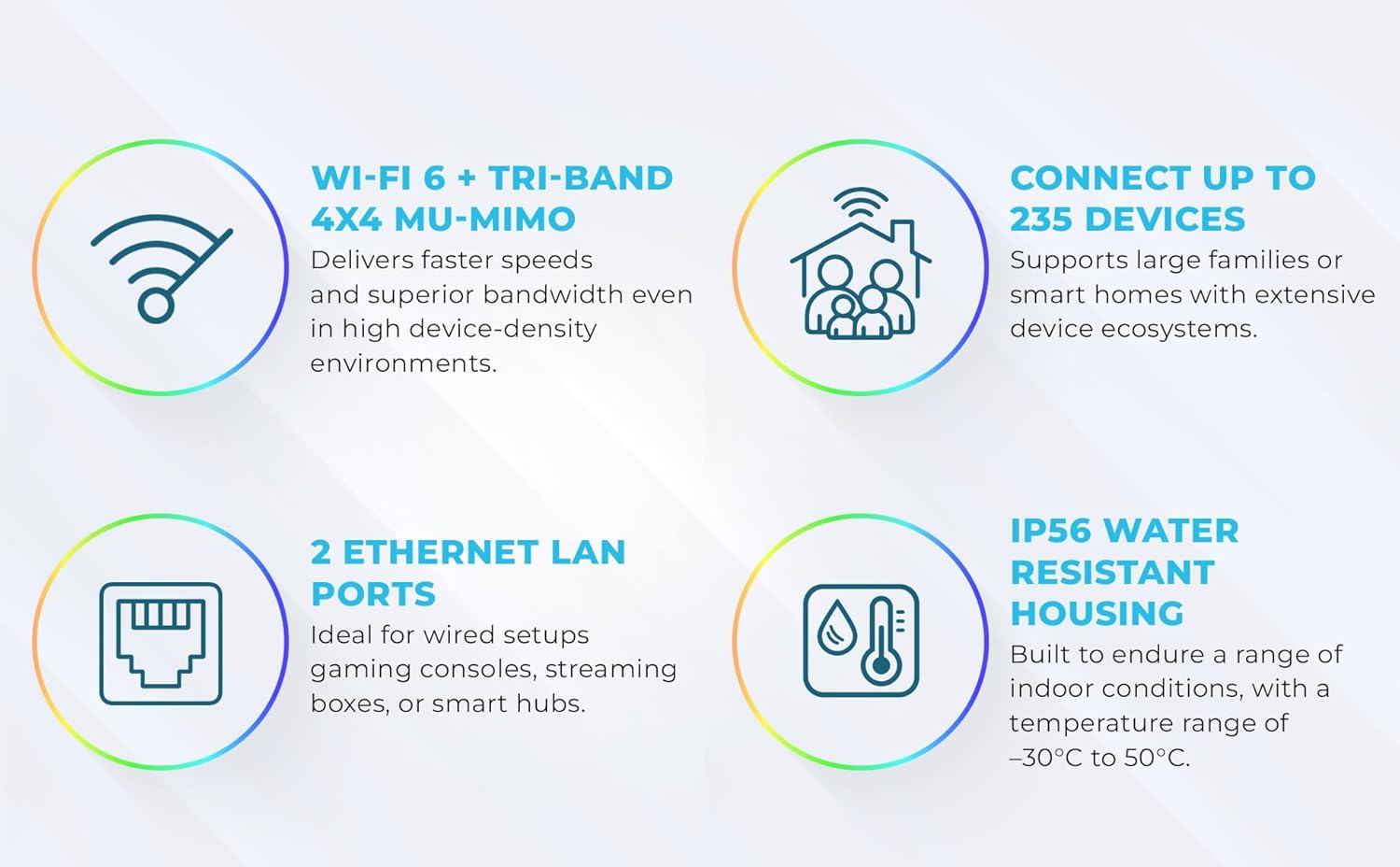 Wide Coverage & Capacity – Covers up to 3,200 ft² and supports up to 235 connected devices simultaneously.