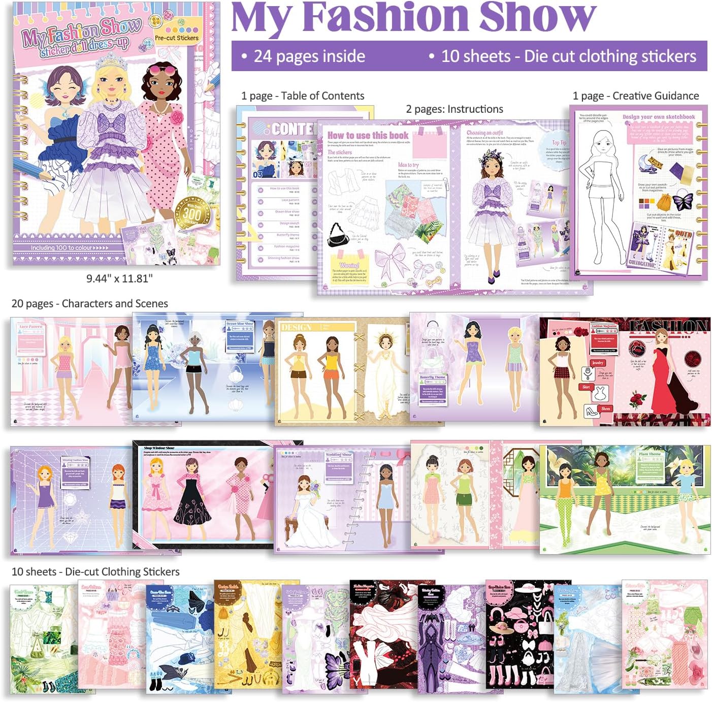Sticker book comes with more than 300 repositionable stickers!Young dress-up fans will find 24 characters to dress.Stickers include clothes, accessories, and embellishments.