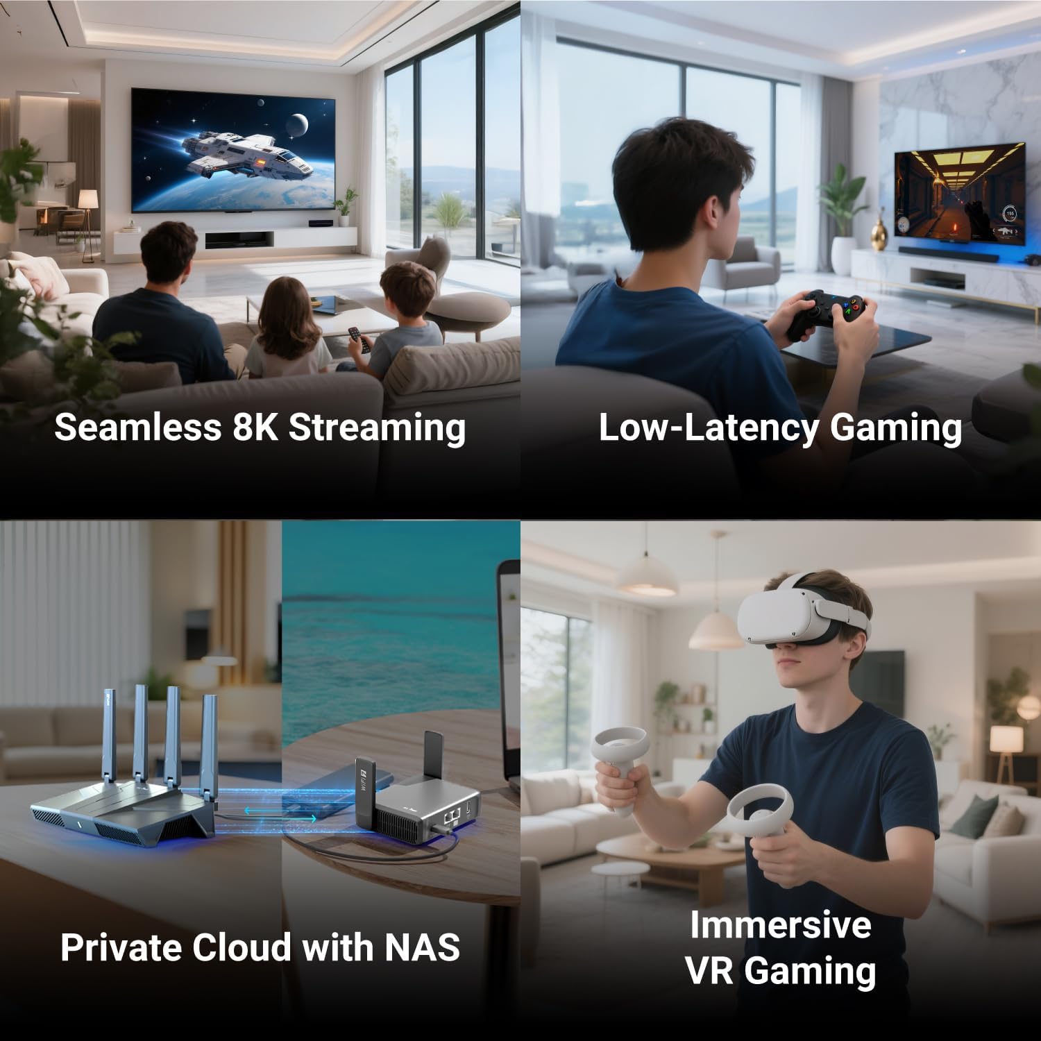 ***Please update the firmware upon initial setup of the router, as it greatly enhances the device’s performance and ensures a superior user experience.*** 【WiFi 7 Standard with ultra-low latency】Wi-Fi 7 speeds up to 9 Gbps to let you enjoy smoother 8K streaming, gaming, video calls and more, DDR4 1GB / eMMC 8GB