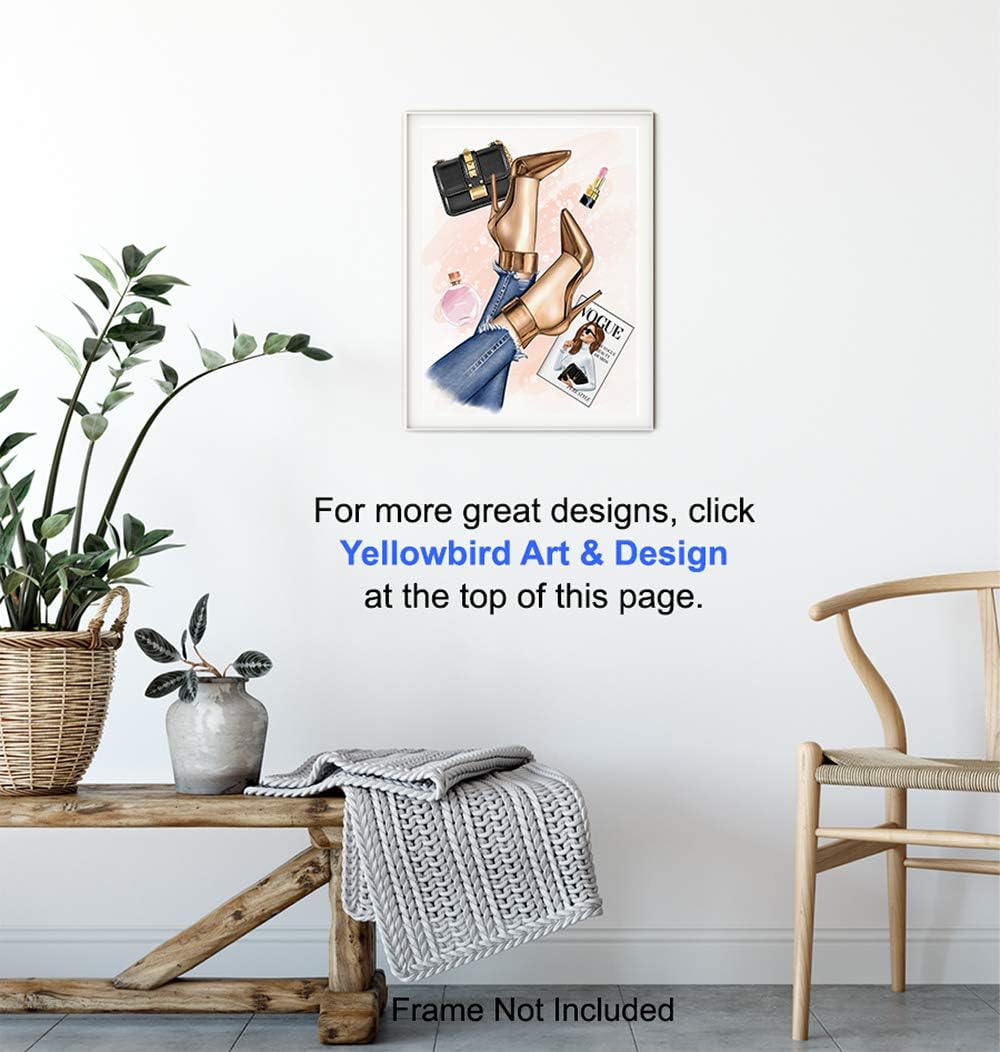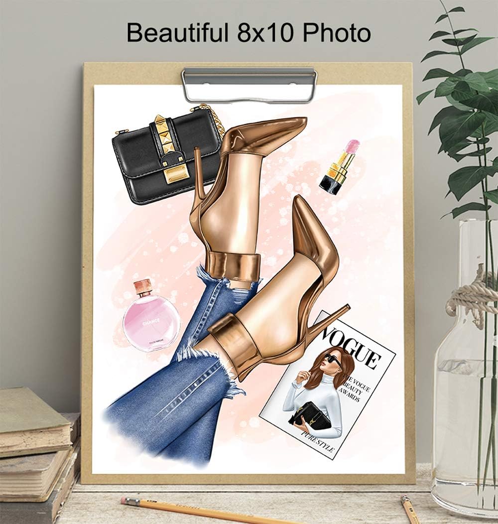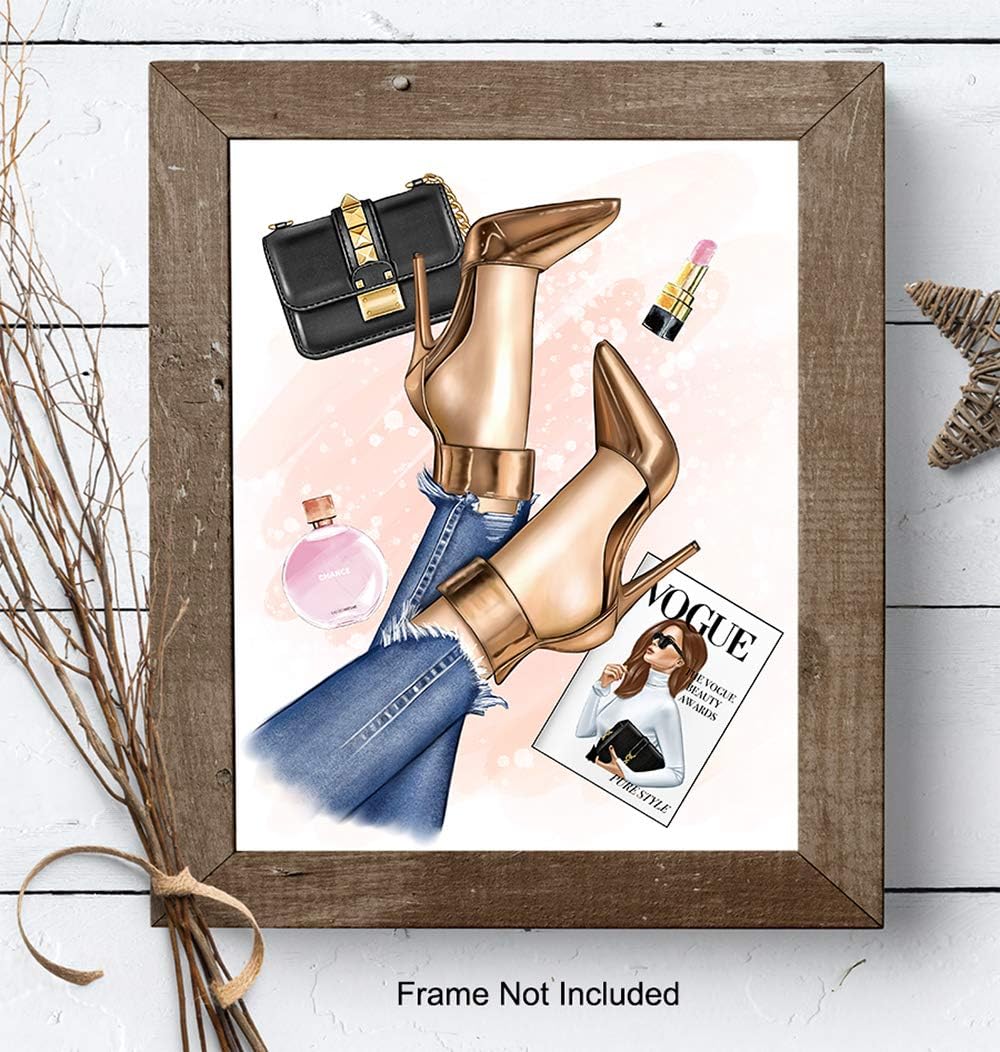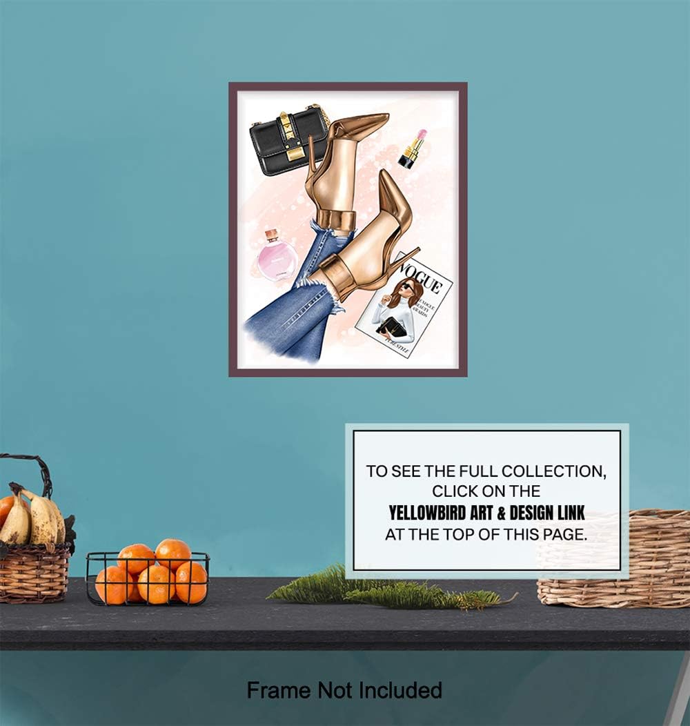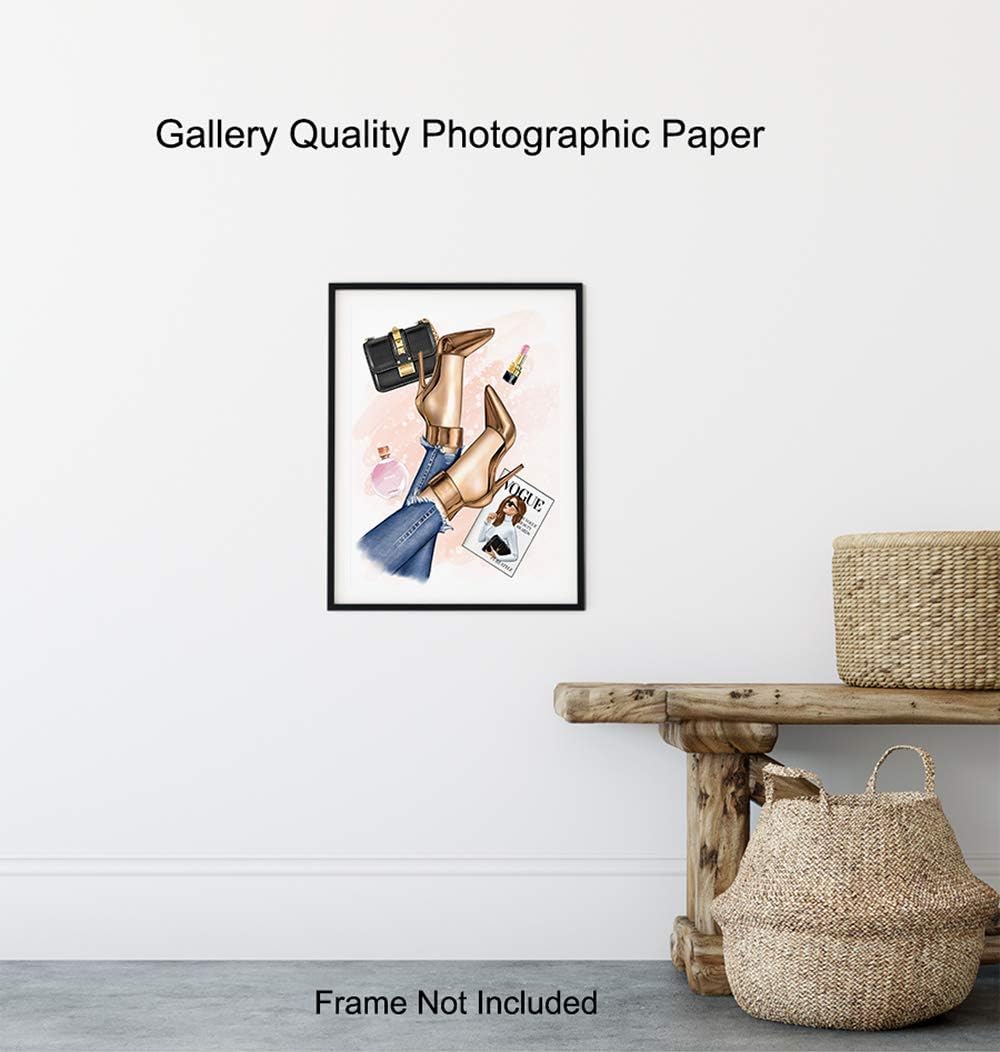 Glam Wall Art Room Decor – Luxury Designer Handbag, Shoes, Perfume Bottle – High Fashion Design Wall Artwork Poster – Couture Glamour Art – Cute Girly Gift for Women, Girls, BFF, Best Friend, Wife