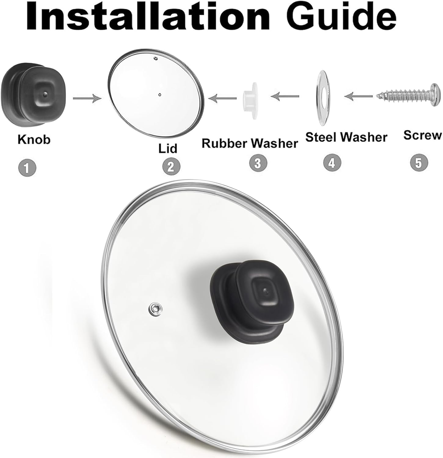 Steam Vent, Premium Thick Glass, Heat Resistant Handle, Stainless Steel Rim.