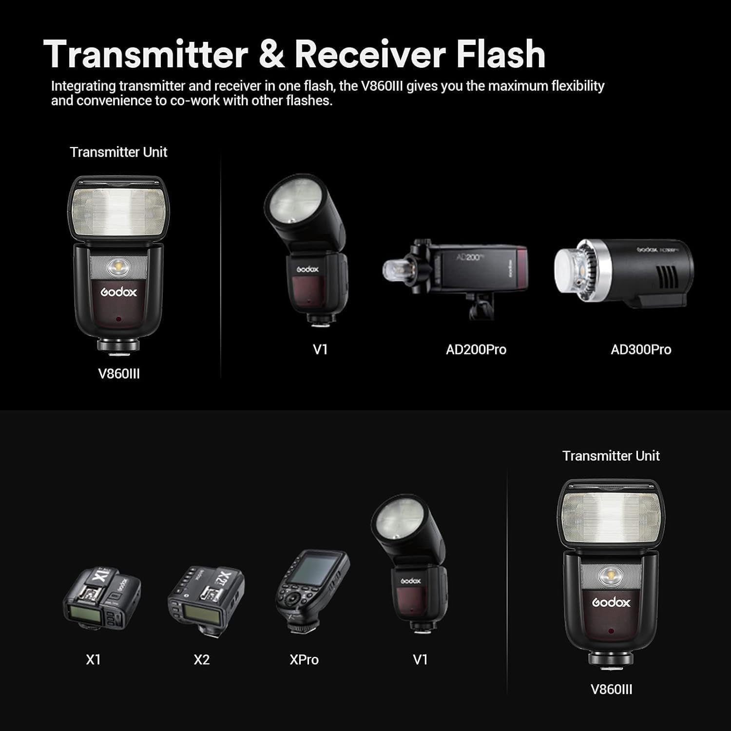 【Built-in Godox 2.4G Wireless X System】 Built-in with Godox 2.4G wireless X system, the V860III ensures a reliable shooting process with seamless connectivity. When using it of-camera, the V860III is also compatible with Godox X system triggers like X1,X2 and, so on.