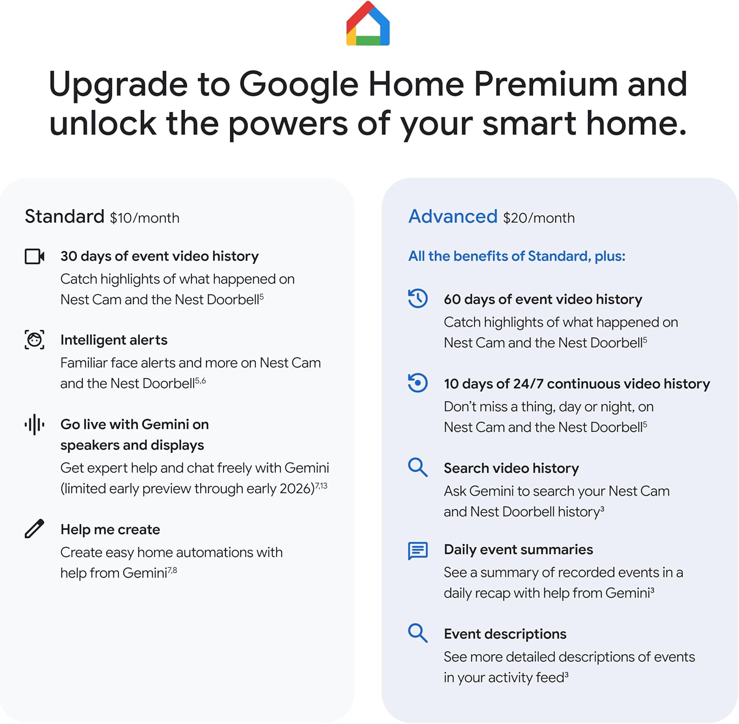 With an Advanced subscription to Google Home Premium, know more about what’s happening with notifications like “Kids are playing soccer in the living room”[3]; and get even more detailed descriptions and tap to see a summary of what happened[3]