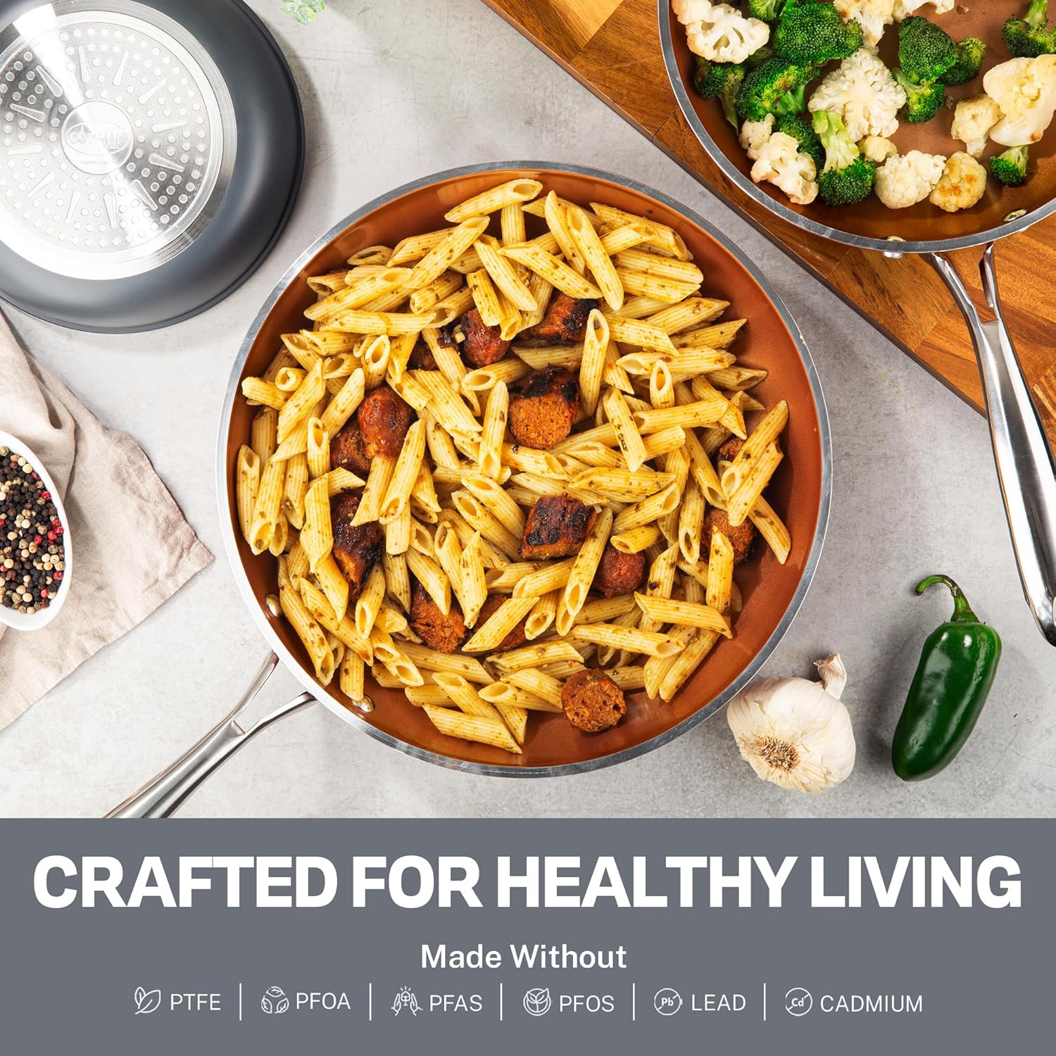 Gotham Steel Cookware: With over 30 million happy customers, Gotham Steel has revolutionized kitchens across the world with the introduction of the nonstick ceramic copper cookware! New for 2020, this set has been improved in every area including the nonstick coating, stay cool handles, exterior finish and durability, including adding diamonds to the surface to ensure the pan doesn’t scratch!
