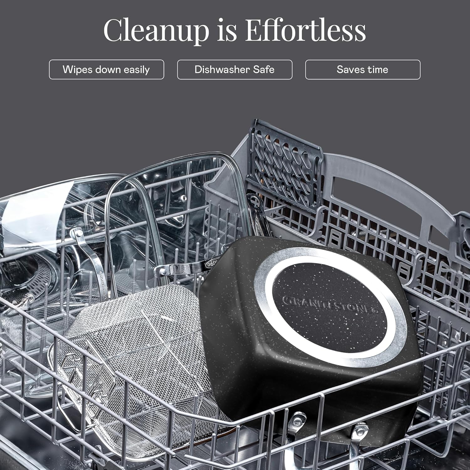 EASY TO CLEAN: Granitestone cookware is designed for an effortless wipe down after using and is completely dishwasher safe allowing you to simply throw your cookware and bakeware in the dishwasher after using for a quick and easy cleanup experience.