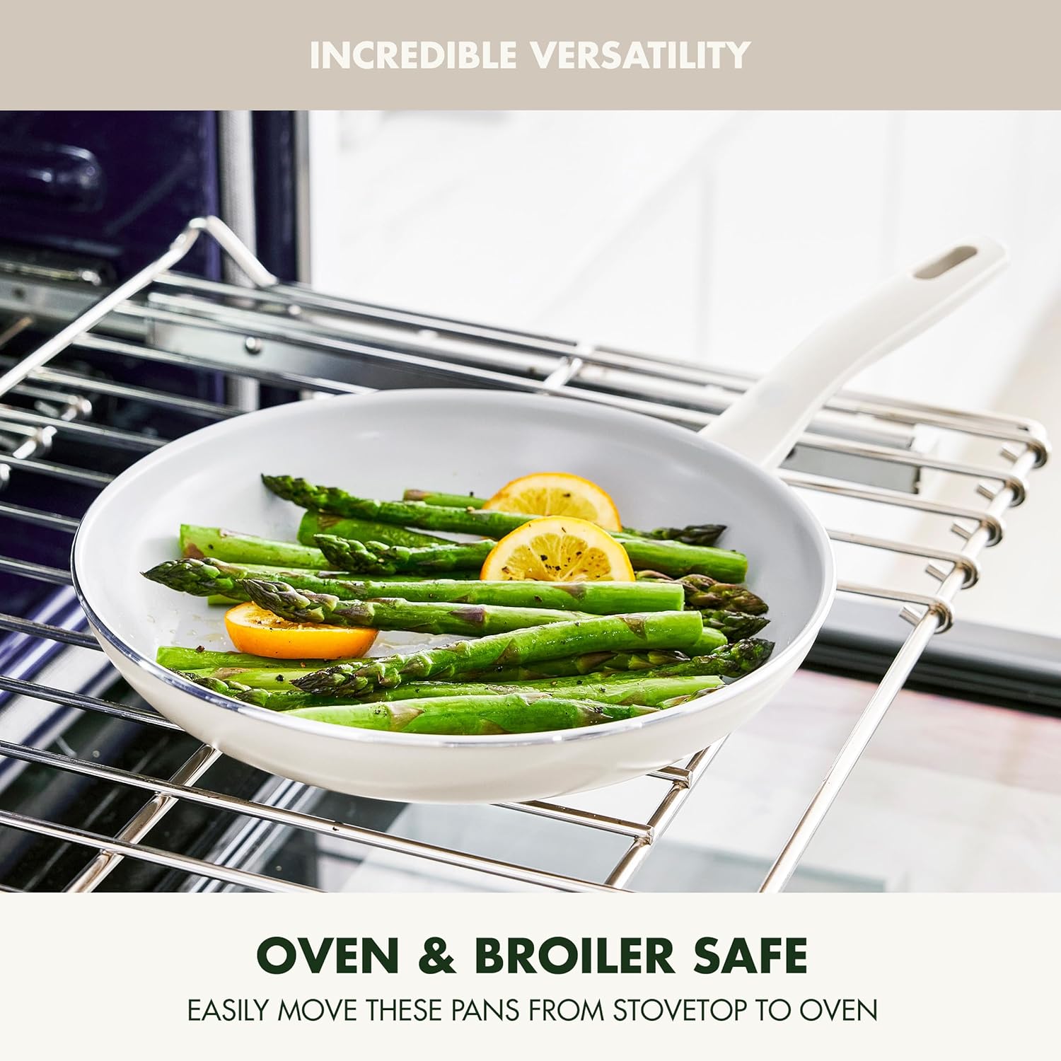 GreenPan Dover Healthy Ceramic Nonstick, 12 Piece Cookware Pots and Pans Set, PFAS-Free, Dishwasher Safe, Comfort Grip Handle, Cream White