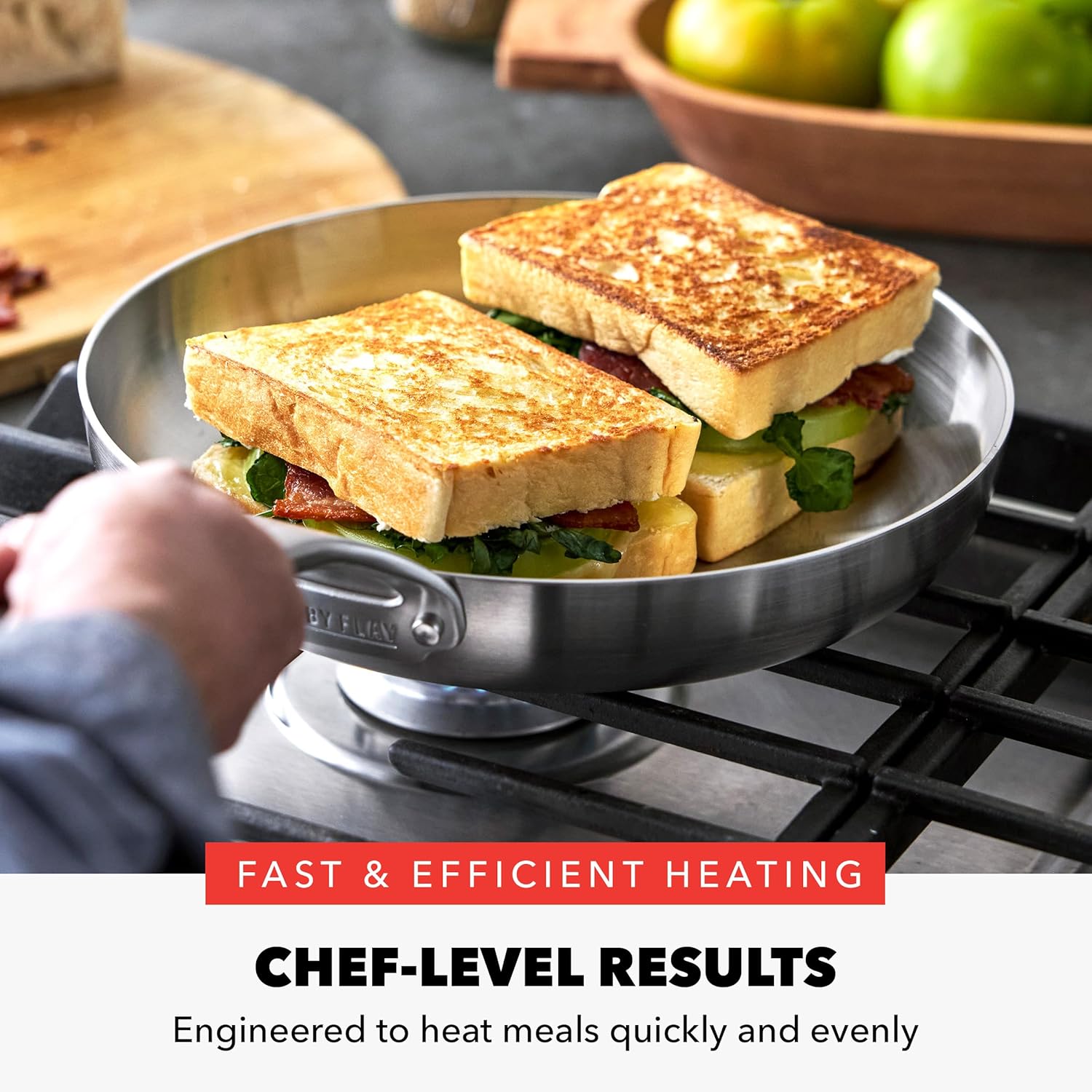 PROFESSIONAL GRADE 3-PLY STAINLESS STEEL: Three layers of stainless steel construction deliver fast, even heating, excellent searing, and long-lasting durability.