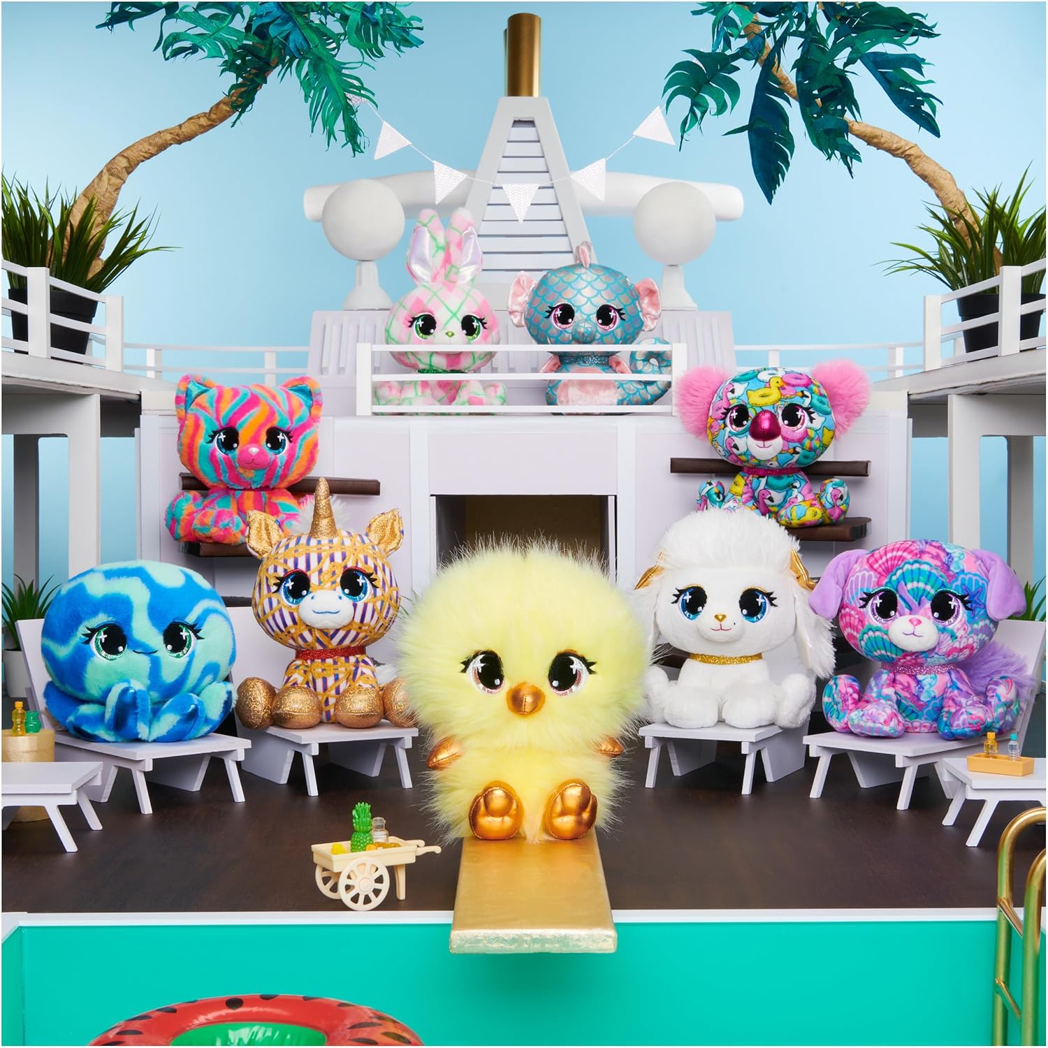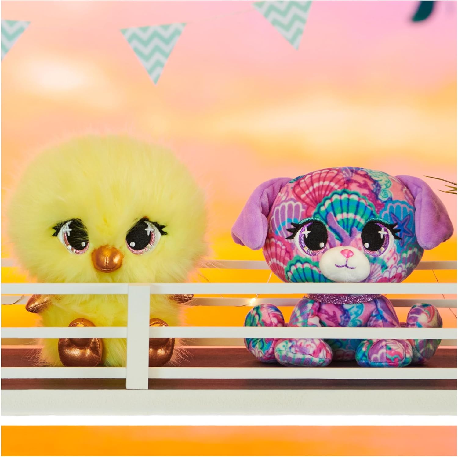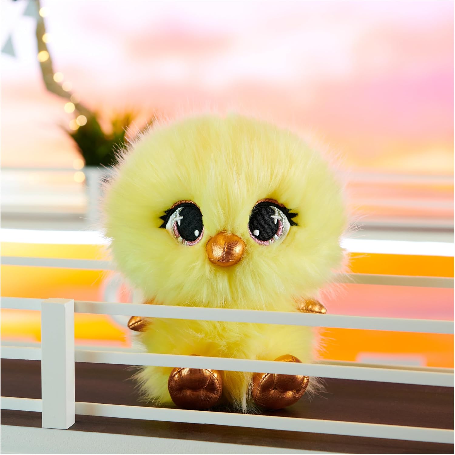 Tweet, tweet; Gia Fluffertin is so sweet! This unique and oh-so-chic chick has super-fluffy yellow plush surrounding pretty pink eyes. Her copper-colored eyeshadow perfectly matches her metallic beak, feet, wings, and sparkly copper collar. Gia enjoys waddling around her hometown of Lake Como, taking in the gorgeous views. P.Lushes Pets are designer plush from all around the world who love to look their best. Everywhere is your personal runway with P.Lushes Pets! This stylish squad of fabulous fashionistas serves chic with a sprinkle of attitude and a whole lot of glitter. Luxe, premium fabrics and a sparkling collar enhance their fashion-inspired looks! Collect them all, from scented Juicy Jam styles to birthstone-inspired Gem Stars, to find all Limited Edition and Special Edition chase plush.