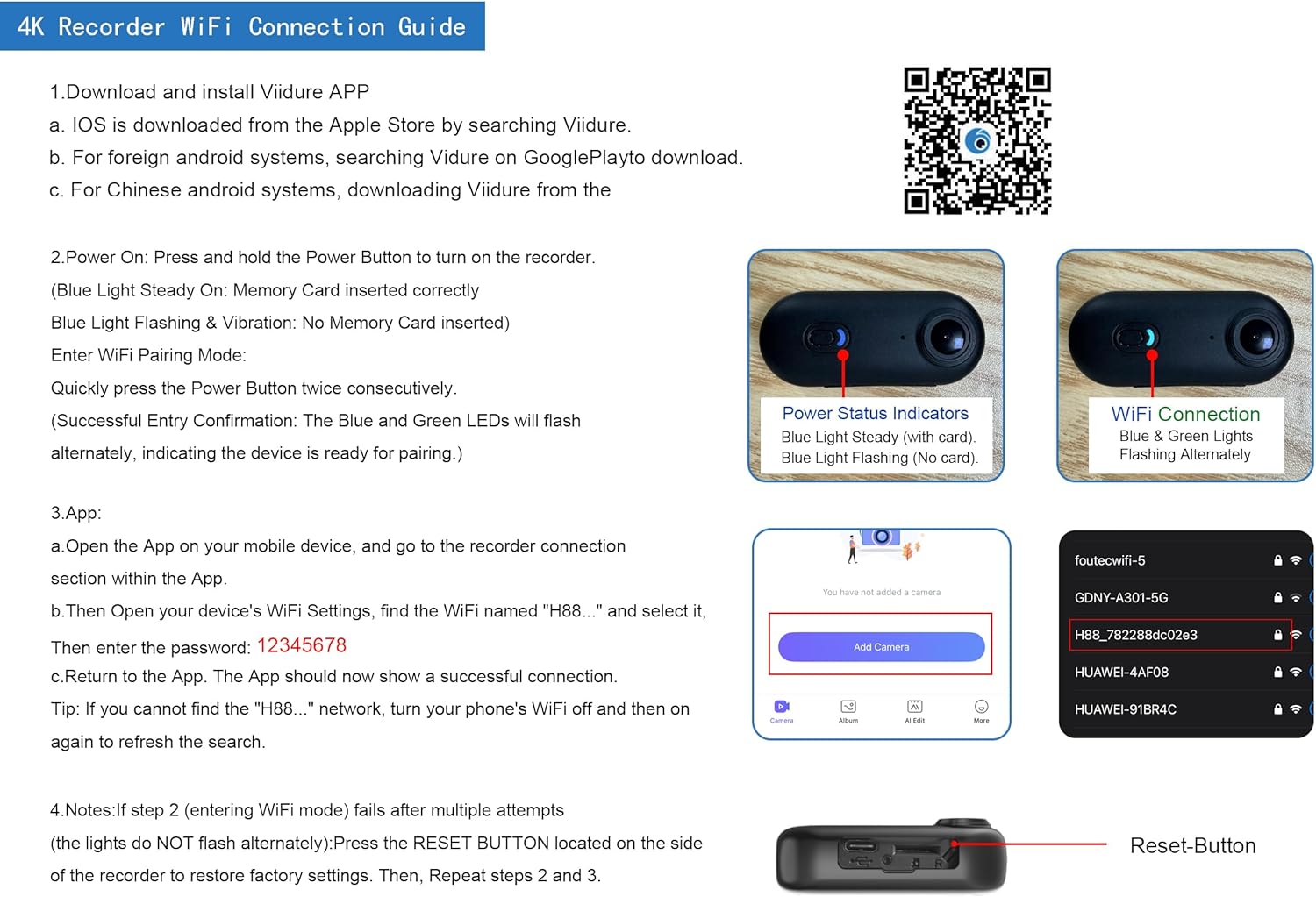 1 Two Recording Modes 2 WiFiConnection Guide 3 Built in WIFI 4 Loop Recording
