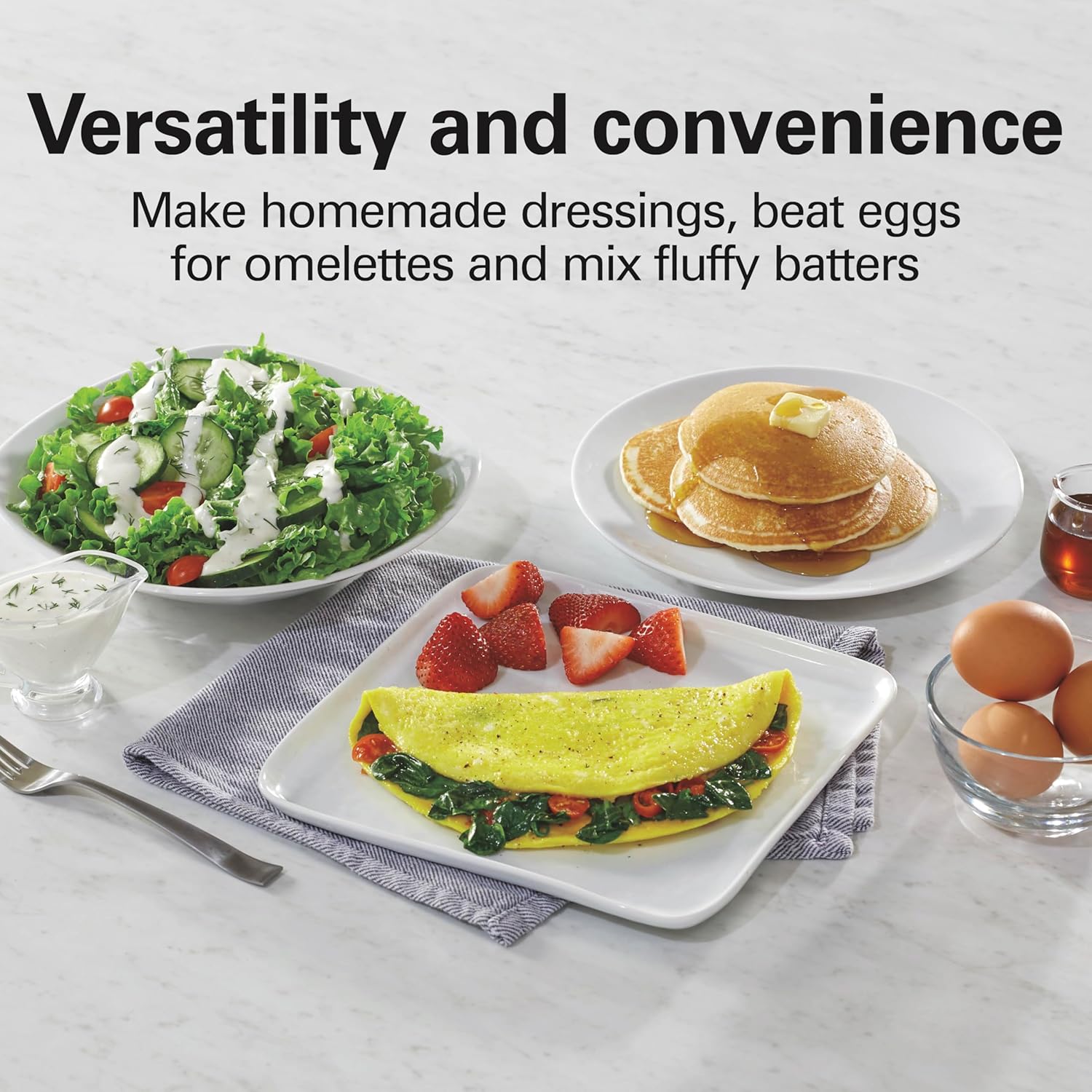 VERSATILITY AND CONVENIENCE: You can create way more than shakes with the Hamilton Beach drink mixer. Keep it on your countertop to make homemade dressings, beat eggs for omelets or mix fluffy batters.