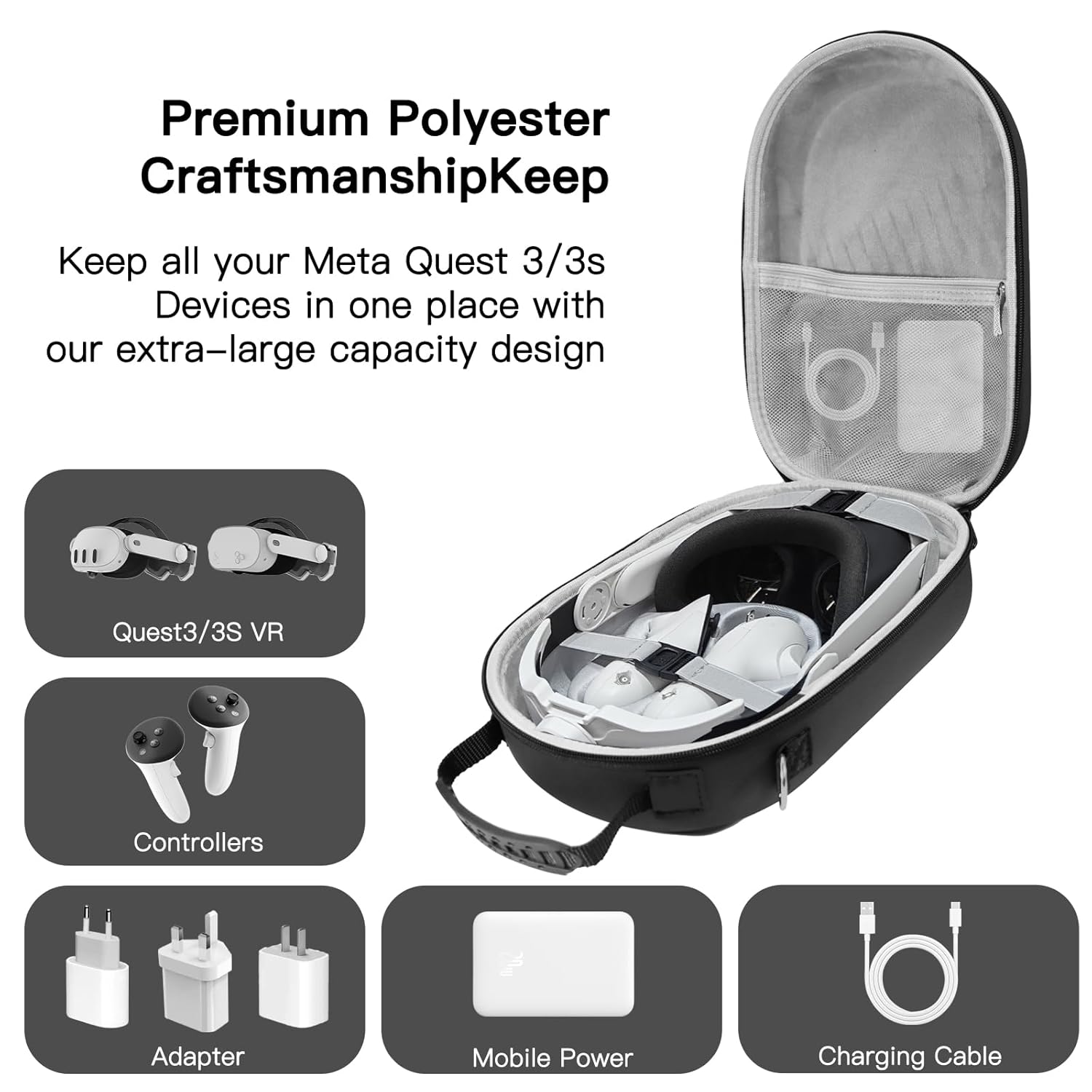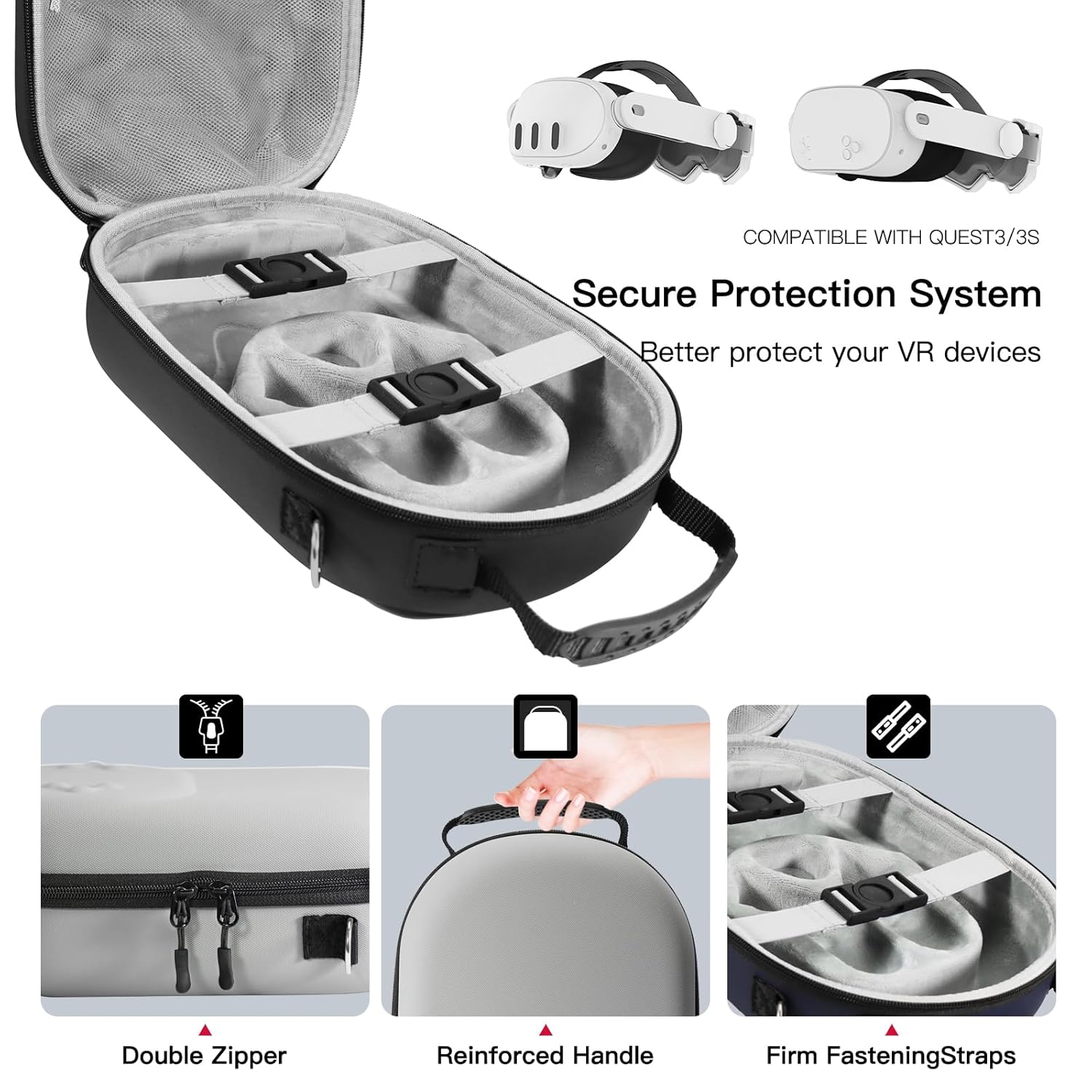 【Perfect Design】The Hard Carrying Case Is Designed For Quest 3/3S. We’ve Improved The Materials To Extend Functionality And Durability Without Sacrificing Ultra-Sleek Looks.
