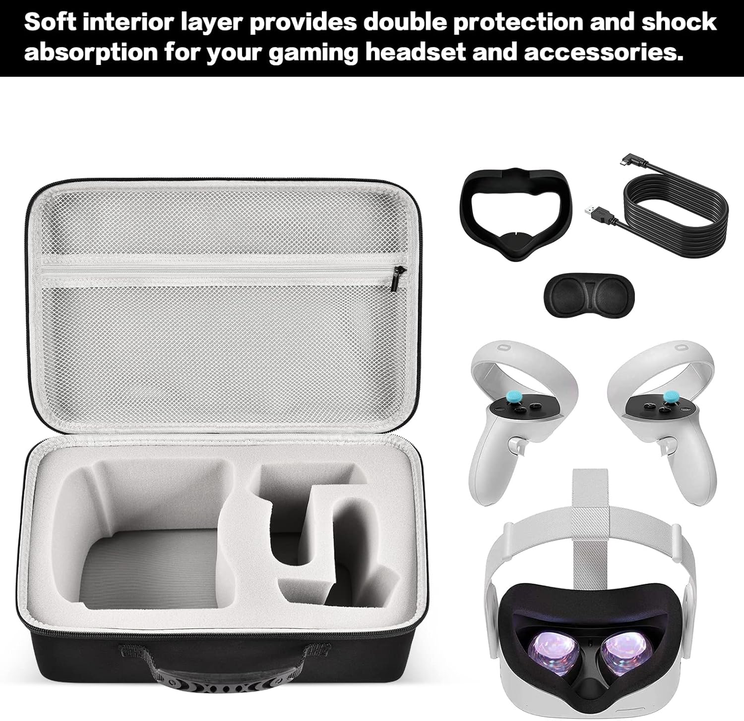 Exquisite Design with Perfect Protection VR Headset Case: for Quest 3s case organizer is made of premium EVA material which is good water resistance, scratch-resistant and shockproof, prevent your headset and 2 controllers from scratches, dust and damage, Each hand control and the VR itself are housed in it own pre-cut slots, You can keep the sponge and cut it for the quest 3 controller. Keep them safety and snug in place all the time.