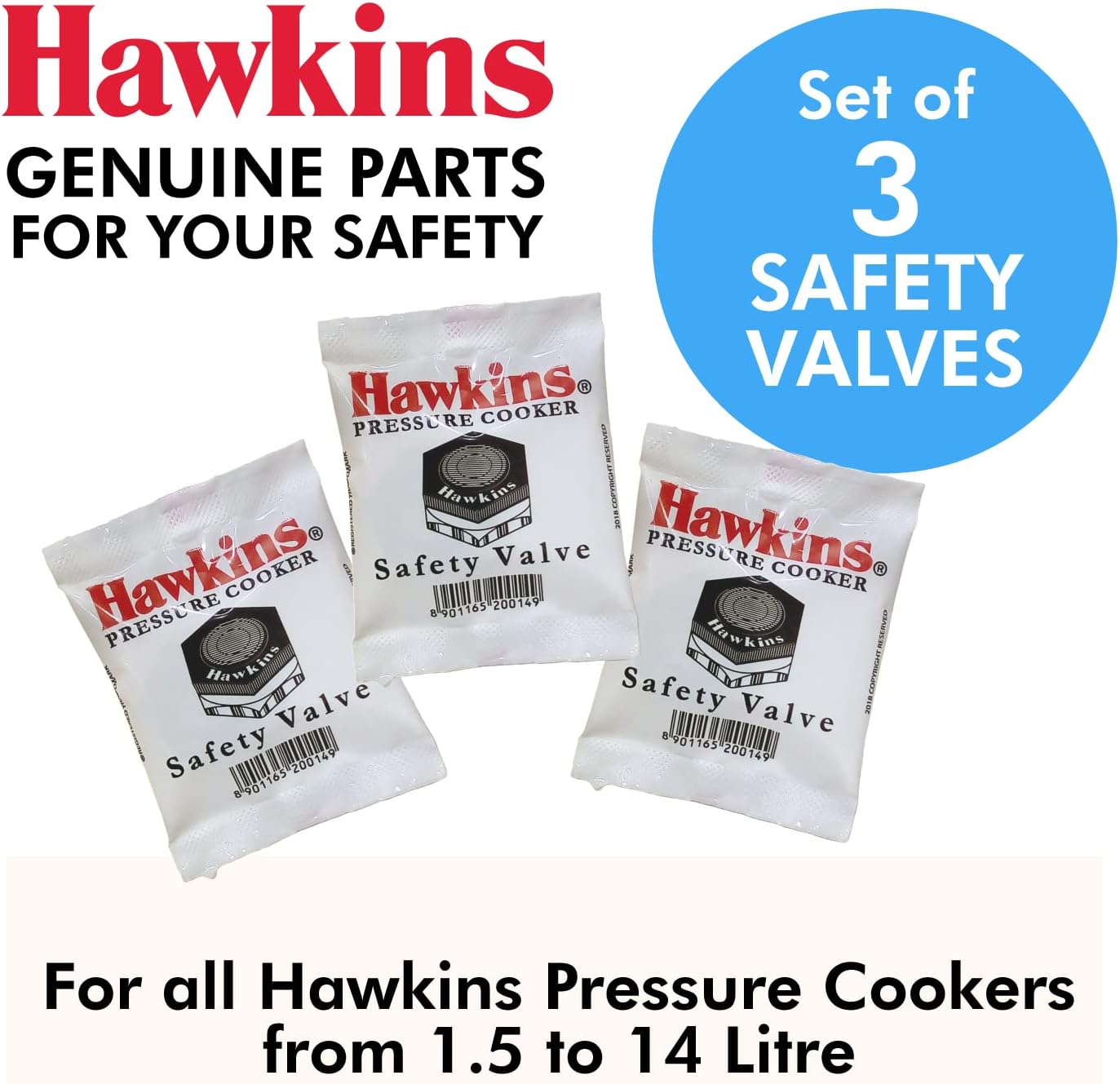 Hawkins safety valves for pressure cookers. Fits perfectly. Made in India. Well packaged in original packaging. Made for aluminum and stainless steel models.