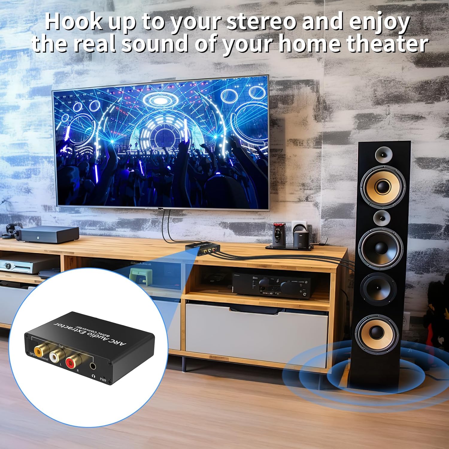 Multi-Interface Compatibility & Smart Matching:Our digital to analog audio converter integrates HDMI ARC, optical fiber, coaxial 3 input methods switching function, optical, coaxial, RCA stereo, 3.5mm stereo headphone audio output at the same time, this hdmi audio extractor is compatible with PCs, mobile devices, Hi-Fi systems, and professional audio equipment. Adjustable volume, automatically identifies input signal formats and optimizes output parameters for “plug-and-play” full-scenario adaptation.