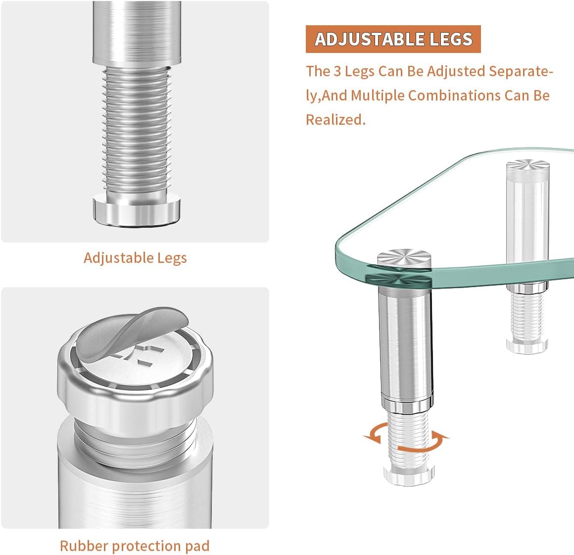 Height Adjustable: The stainless steel leg can be freely adjustable height from 3.4 inch to 4.9 inch