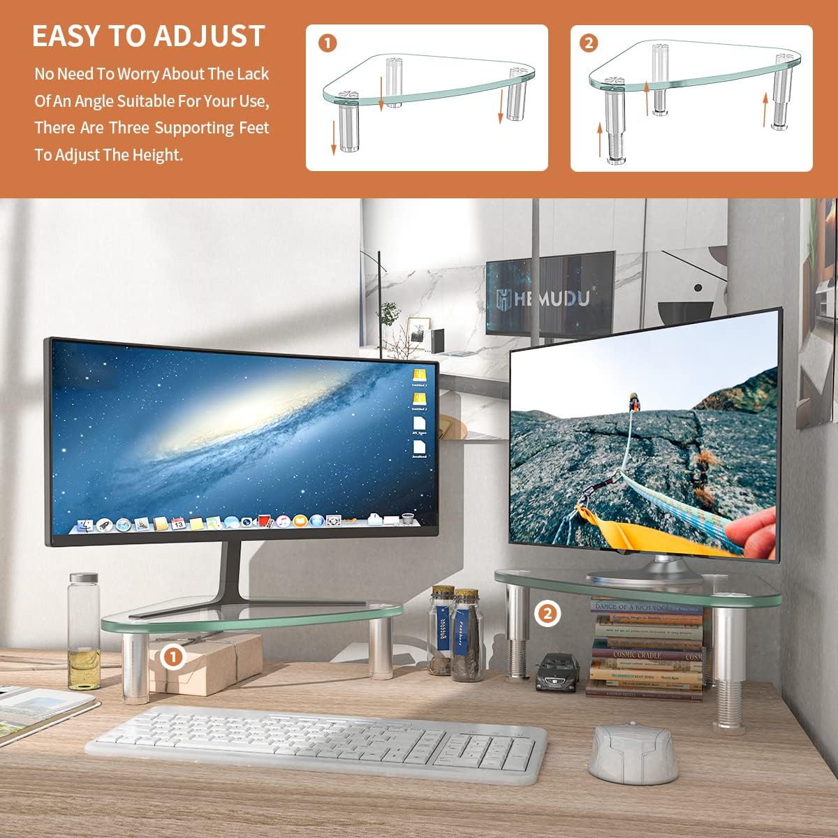 Tilt Function: My computer monitor riser can adjust forward 0-15 degree to put the computer comfortable position