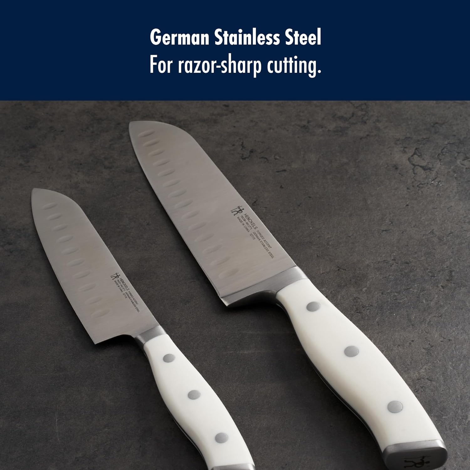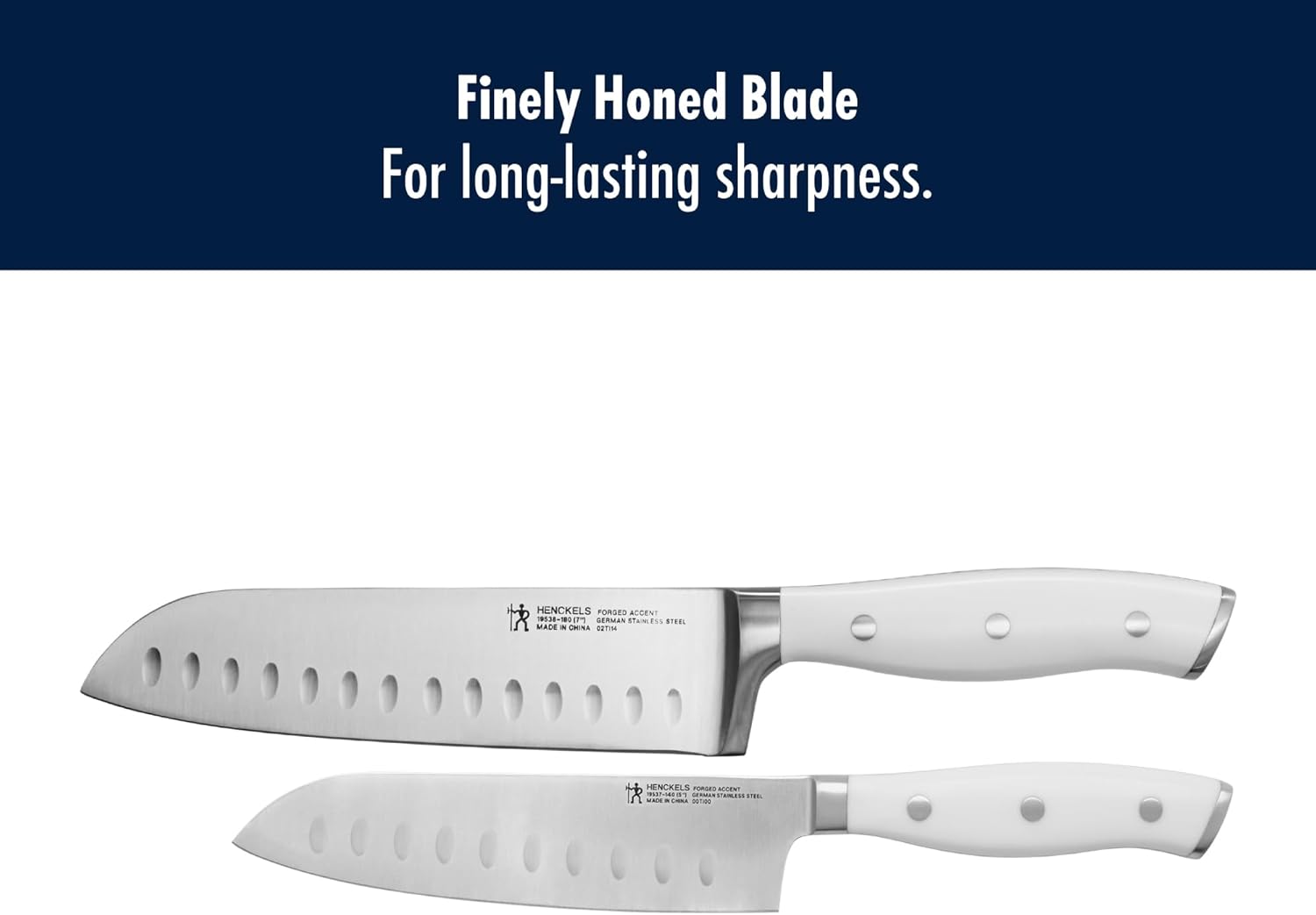 SET INCLUDES: 5-inch Henckels Santoku Knife and 7-inch Henckels Santoku Knife.