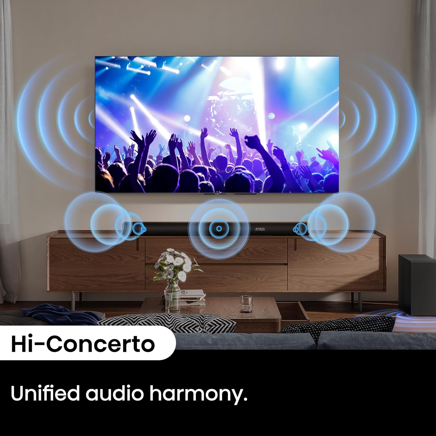 3.1 Channel: Enjoy a true 3.1 channel surround sound, bringing movies, music, and games to life, including a front sound bar, and a wireless subwoofer.