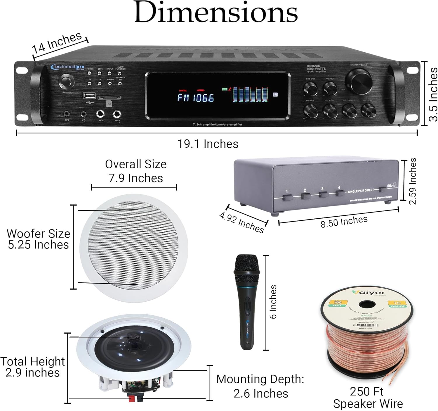 IMPROVE YOUR HOME AUDIO SETUP: Enhance your entertainment with our home audio kit, designed for easy installation and ideal for home theater systems. The kit includes a high-performance home theater receiver, ceiling speakers, 4-Ch Speaker Selector, a professional microphone, and quality speaker wire. Perfect for setting up a home stereo system or a home stereo system with Bluetooth, this package ensures clear, powerful sound. Great for anyone looking to build a home audio system with speakers.