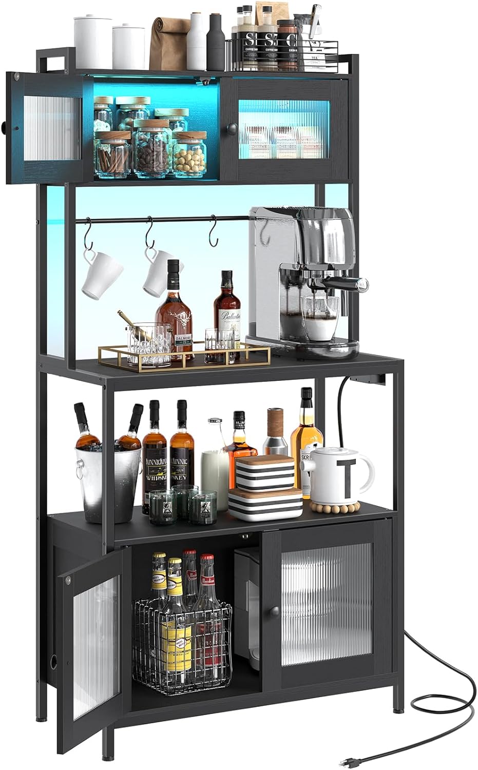 Multi-Tier Storage: The bakers rack with cabinets and open shelves is an excellent storage for organizing baking tools and ingredients. The partially see-through cabinet doors enable you to view the contents while protecting them from dust and ensuring easy access
