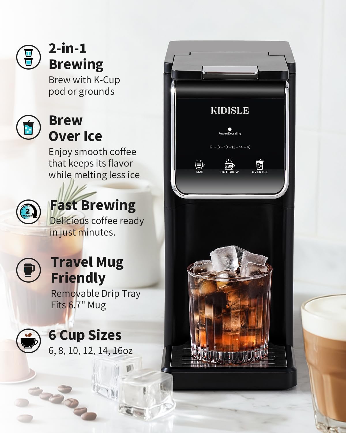 【K Cup & Ground Coffee】: Enjoy the convenience of brewing K Cup pods or your favorite coffee grounds.