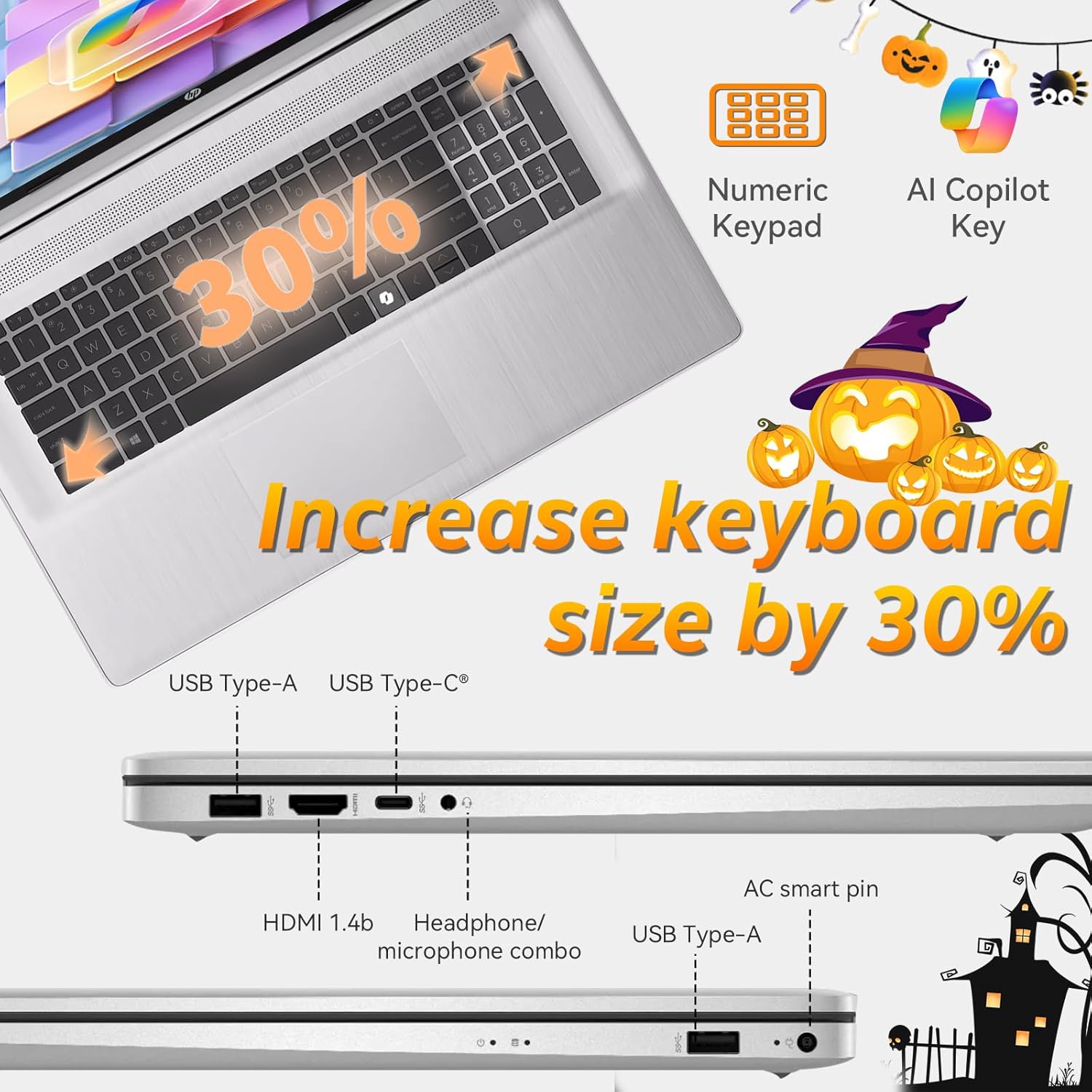 ➤ HP 17.3” Laptop with Full-Size Display & Ports | Enjoy sharp visuals on the HP 17.3” FHD IPS screen—perfect for presentations, spreadsheets, or relaxing with HD content. Stay connected with Wi-Fi 6, Bluetooth 5.2, HDMI, and USB-A/C ports (data only). 📌 Note: This model features a non-backlit keyboard, ideal for well-lit workspaces.