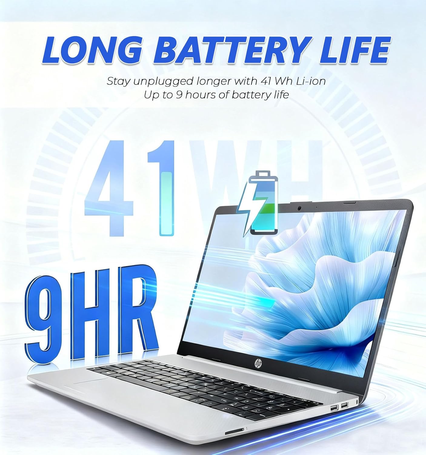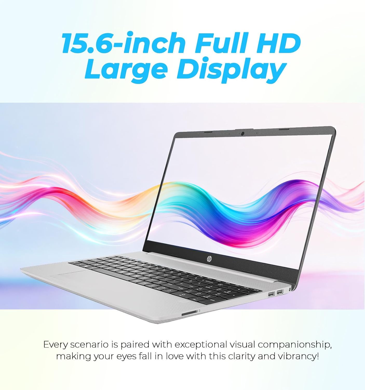 Display: Work and stream comfortably on the vibrant 15.6-inch diagonal FHD (1920 x 1080) IPS anti-glare display. With 250 nits brightness and anti-glare technology, it effectively reduces reflections and eye strain, making it ideal for extended work sessions, online learning, or enjoying movies in vivid clarity.