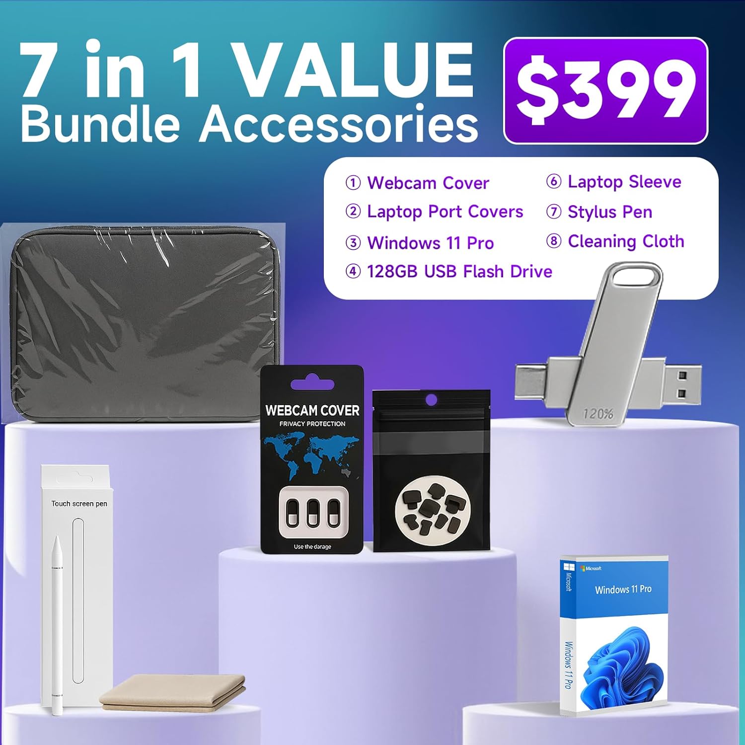 Slim & Travel-Ready Business Laptop: Weighing just 3.52 lbs and only 0.73” thin, this Dell laptop is lightweight yet durable—ideal for business travelers and daily commutes. HP fast-charge to50% in 45 mins with up to 7.75hrs battery life. Comes with a premium 6-in-1 accessory kit: Stylus Pen, Webcam Cover, 128GB USB Flash Drive, Laptop Port Covers, Laptop Sleeve, and Cleaning Cloth