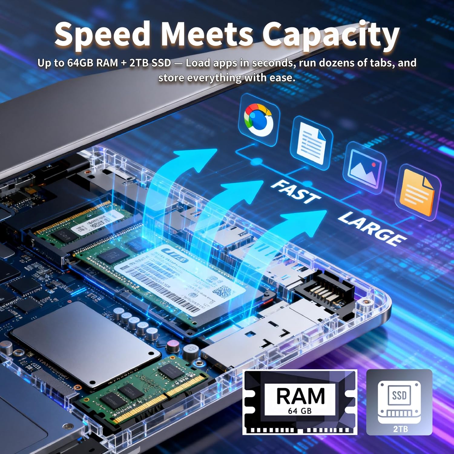 Upgraded Massive Storage: Multitask with ease and keep all your files in one place. With up to 64GB RAM and a 2TB PCIe SSD, you can store textbooks, research projects, or large business presentations while enjoying lightning-fast performance