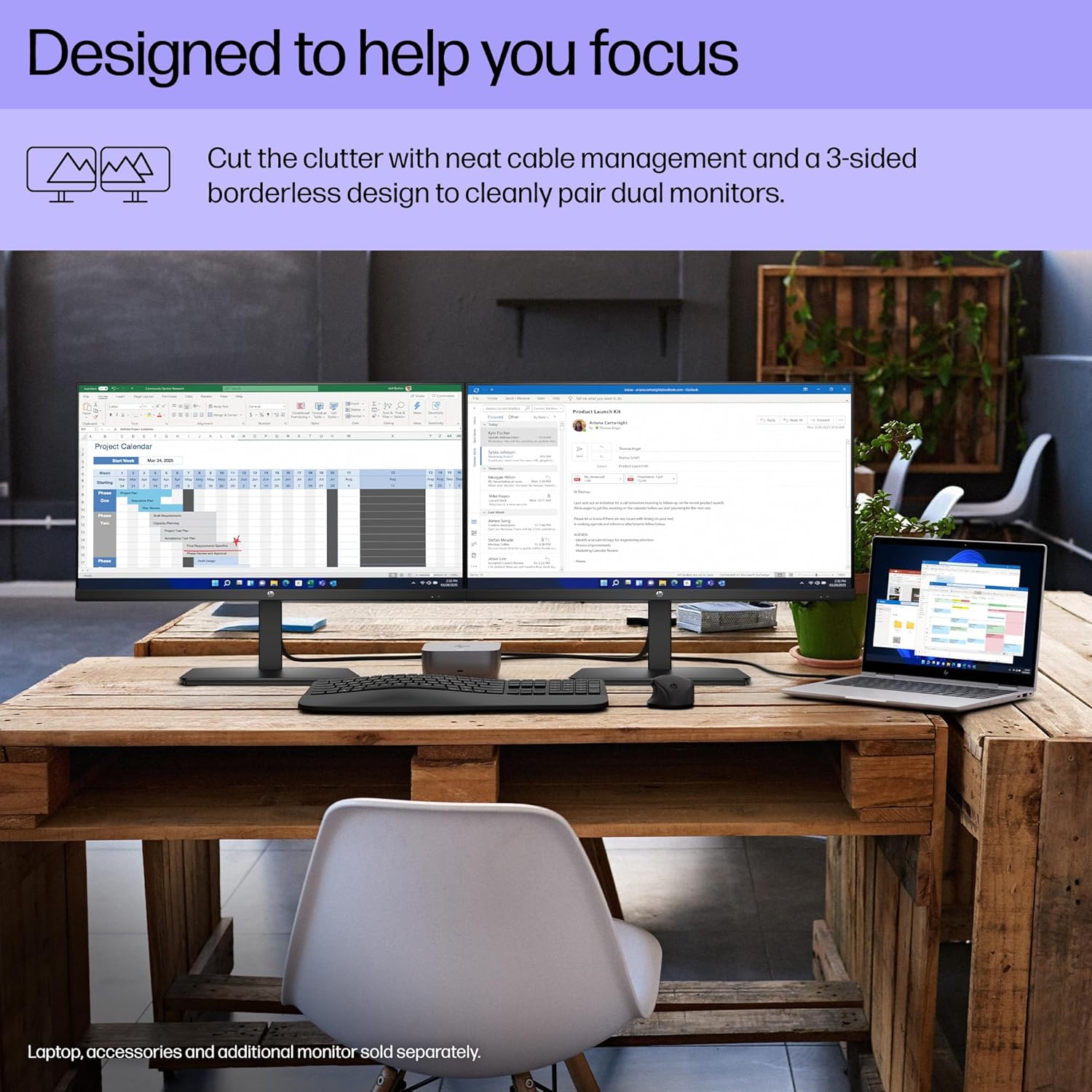 SLEEK DESIGN, CLEAN SPACE – See and do more on your screen with a 3-sided borderless with micro-edge bezel design that maximizes your viewing area for a sleek design and virtually seamless dual-monitor setups